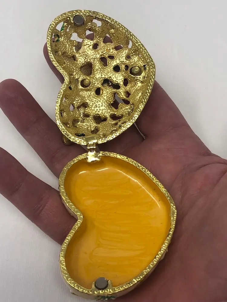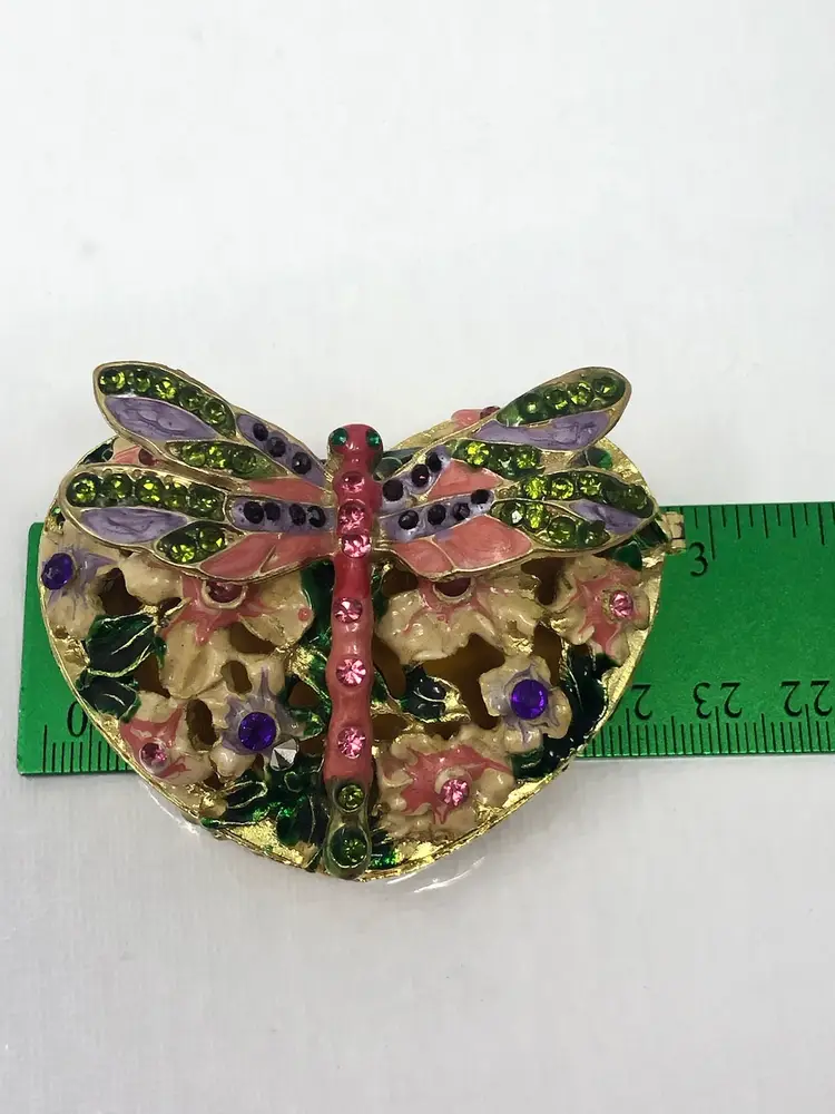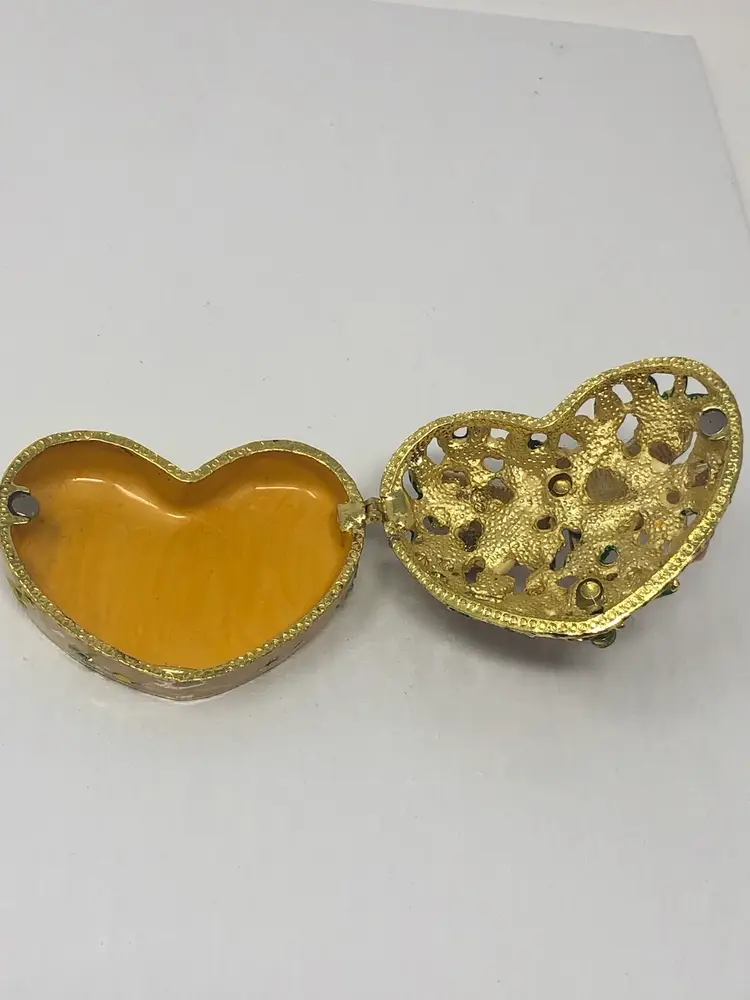 2 1/2" heart shaped trinket box with hinged lid and magnetic closure. No markings or labels, good condition