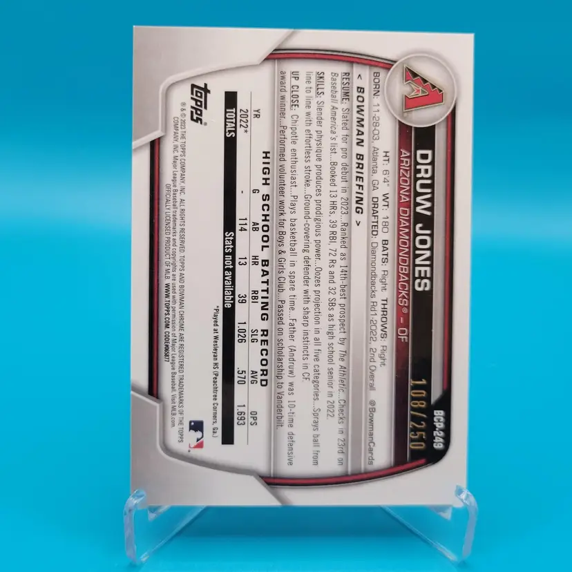 Druw Jones purple refractor /250. NM or better condition. Shipped PWE.
