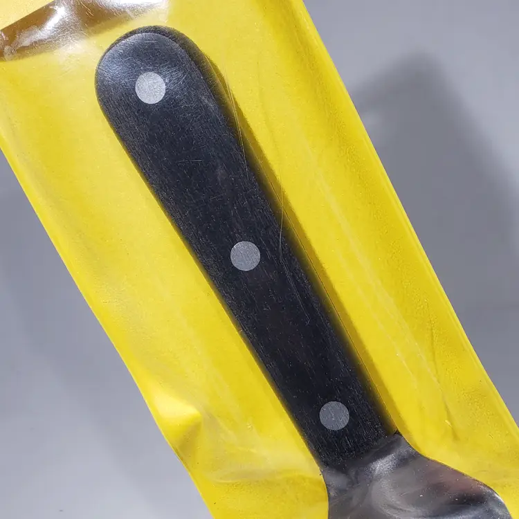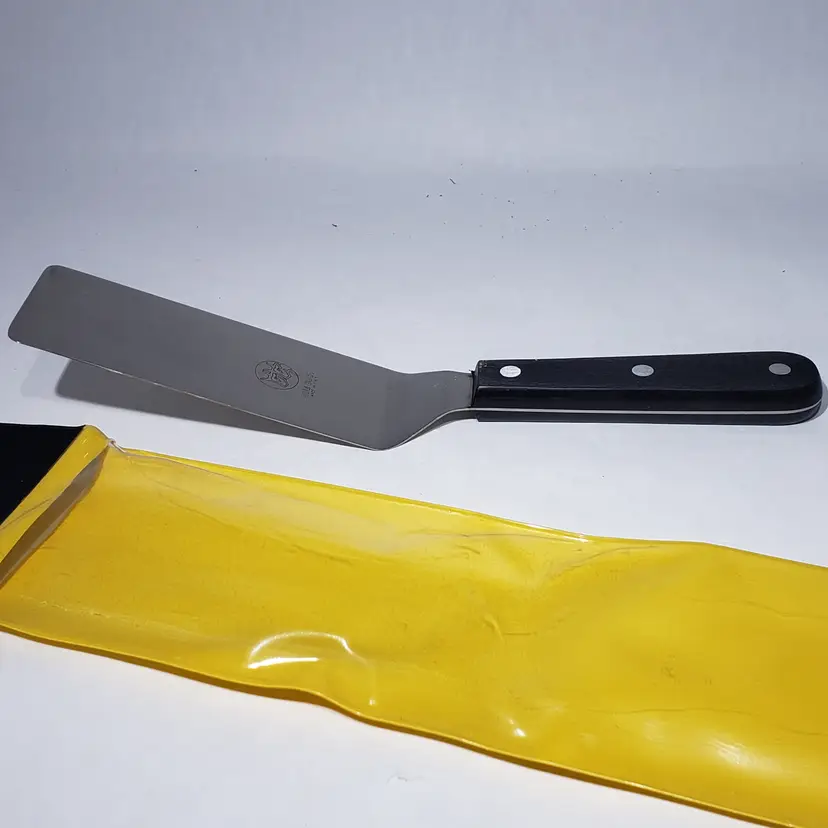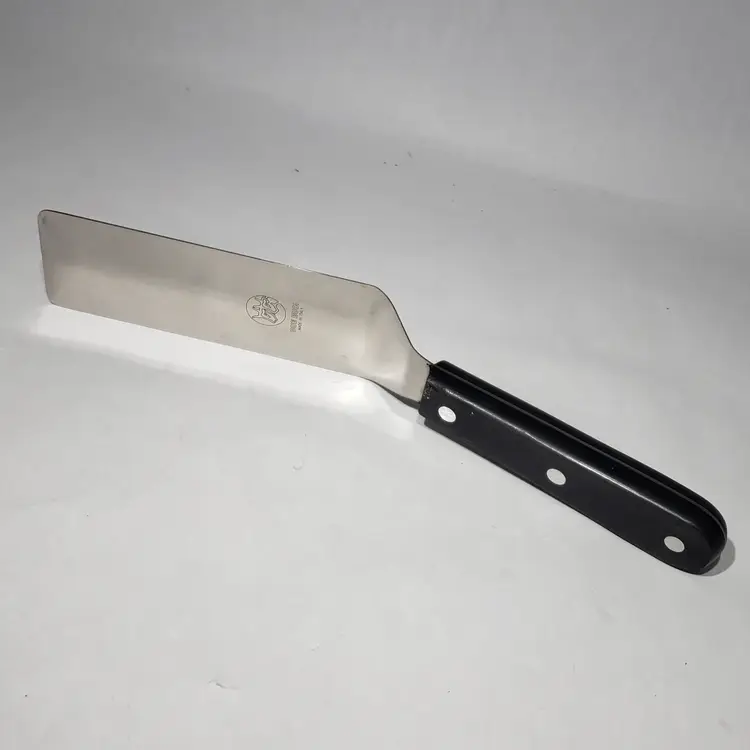 Premium Stainless Steel: Crafted from high-quality AISI 420A stainless steel, this spatula offers exceptional durability and resistance to rust. Hardened Blade. Ergonomic Handle: The black technopolymer handle provides a comfortable and secure grip, reducing hand fatigue during extended grilling sessions. Triple riveted full tang handle. Angled Neck: The angled design allows for easy access to food, making it simple to lift, flip, and turn with ease. Versatile Use: Whether you're grilling solo or working alongside a wider spatula, this tool is perfect for a variety of tasks.