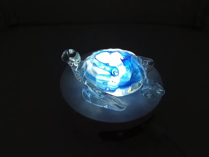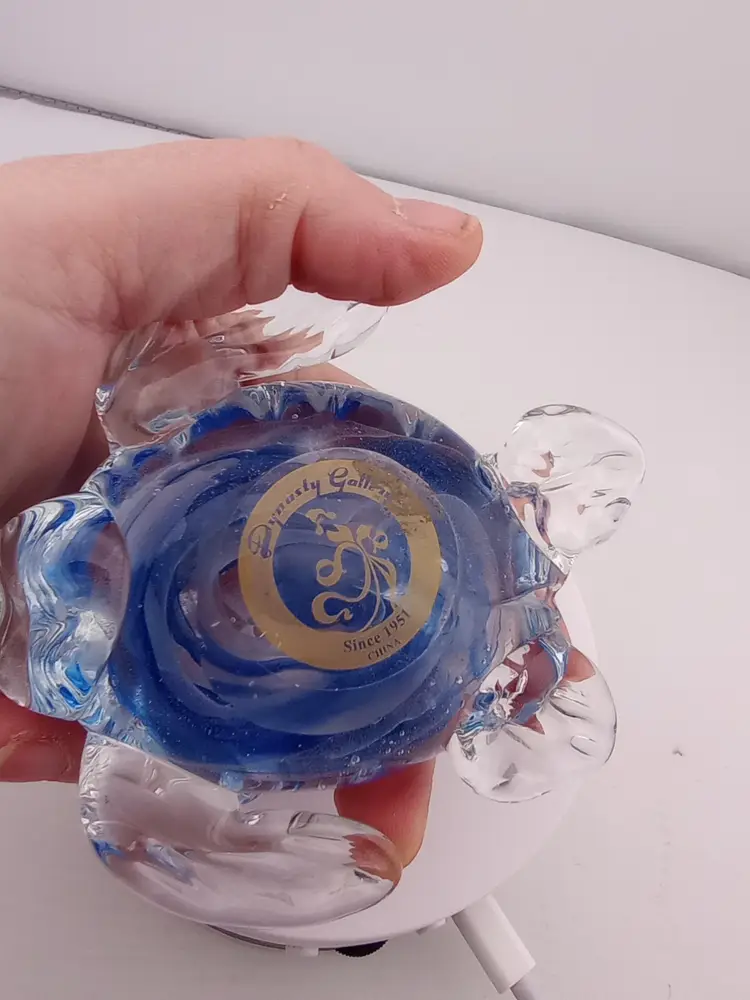 It's an adorable blue turtle paperweight from Dynasty Gallery. It's in excellent condition with no noted flaws.