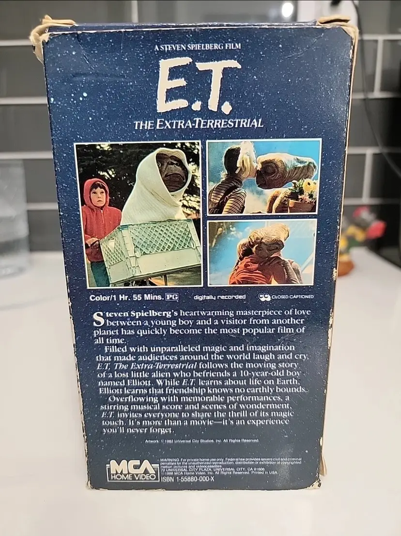 The "E. T. the Extra-Terrestrial Hi Fi Stereo" VHS tape from 1988 features the beloved sci-fi adventure film starring Henry Thomas & Drew Barrymore in a classic family-friendly setting. Produced by Universal Studios, this video captures the timeless appeal of the original movie in enhanced audio quality, making it a must-have for fans of all ages. Perfect for nostalgic viewers or those who enjoy reliving the magic of this iconic film, this VHS tape provides a unique viewing experience that will transport you back to the magical world of E.T.