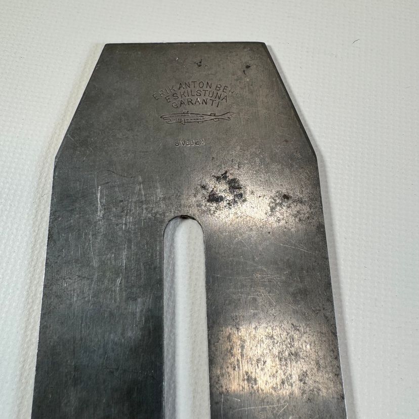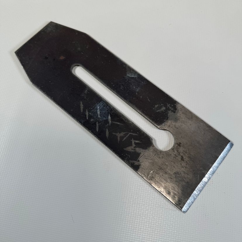 Good condition, it may appear rusted but is not. 7 5/8" long x 2 5/8" wide. Slot is a little narrower than a Stanley iron.