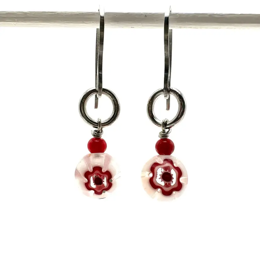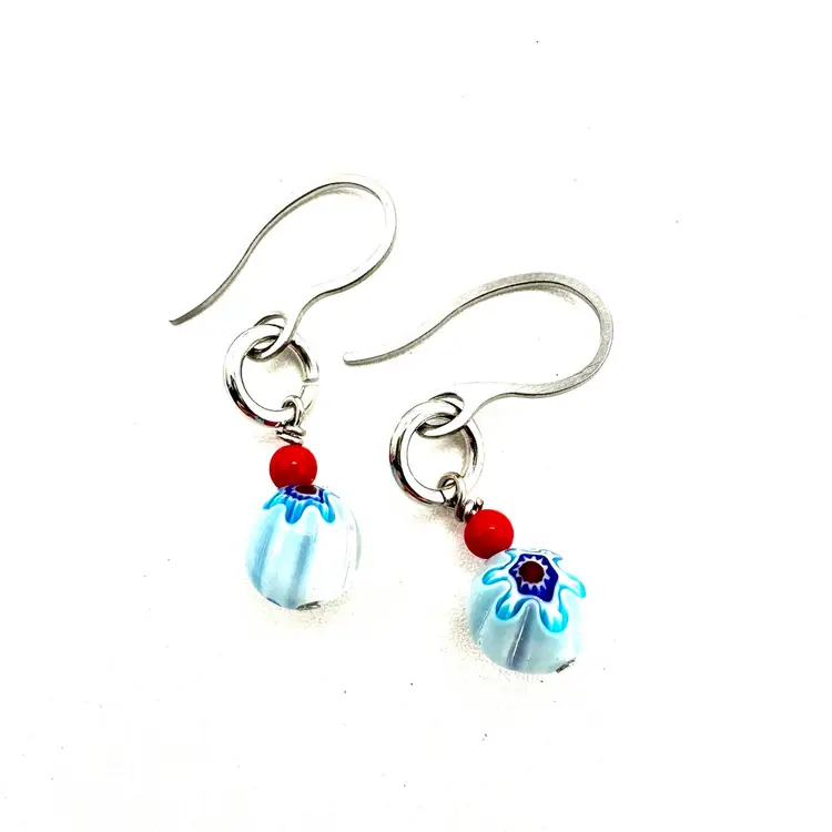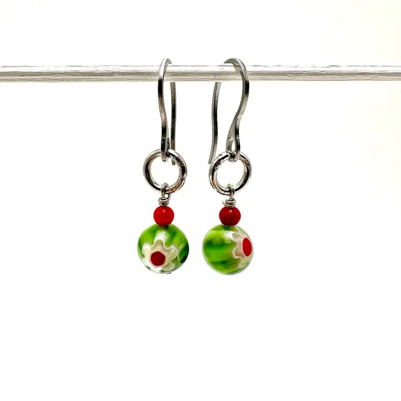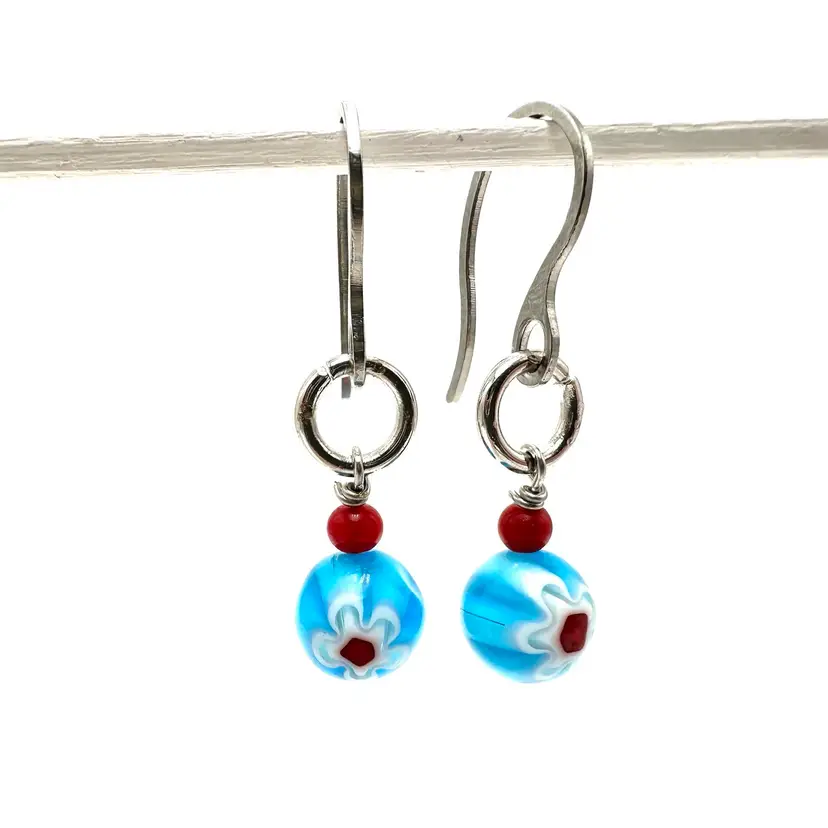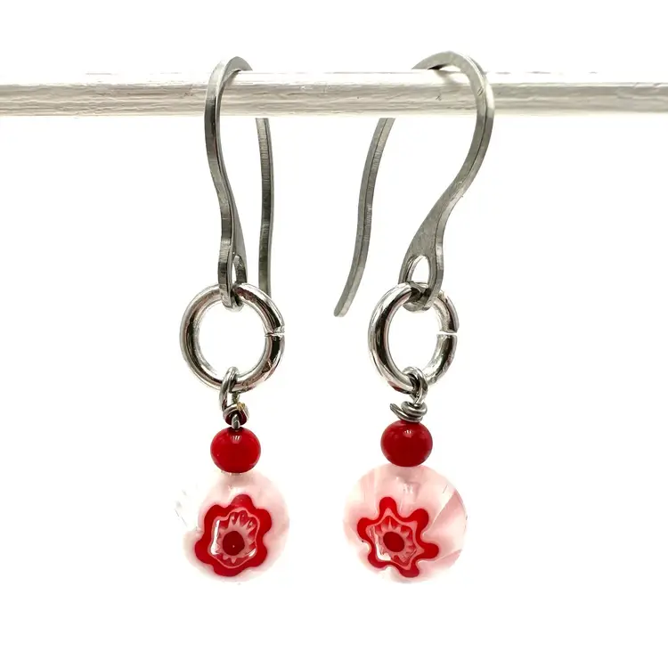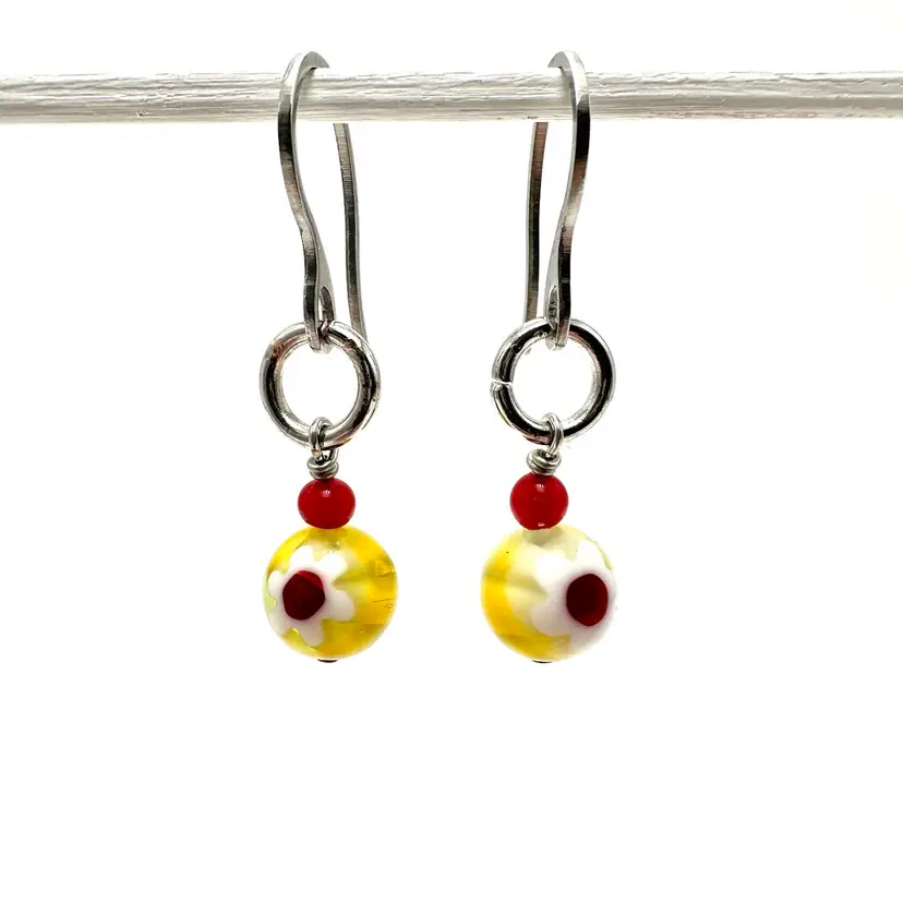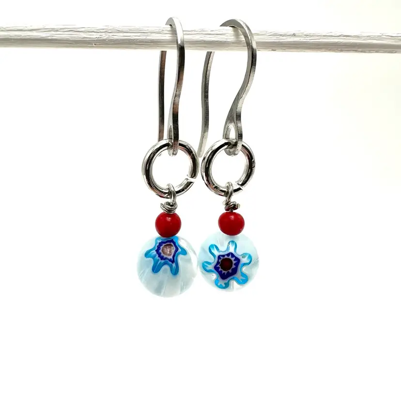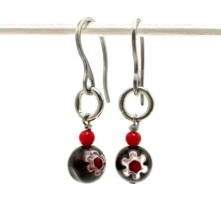Made by me Various colors available Stainless steel hooks Silver tone Glass beads, China