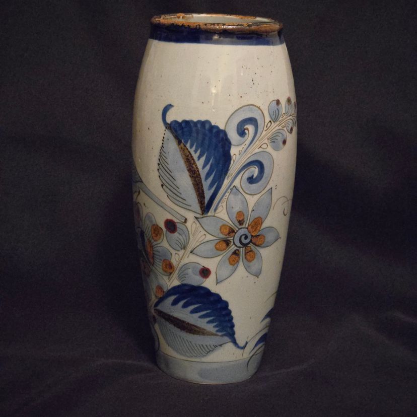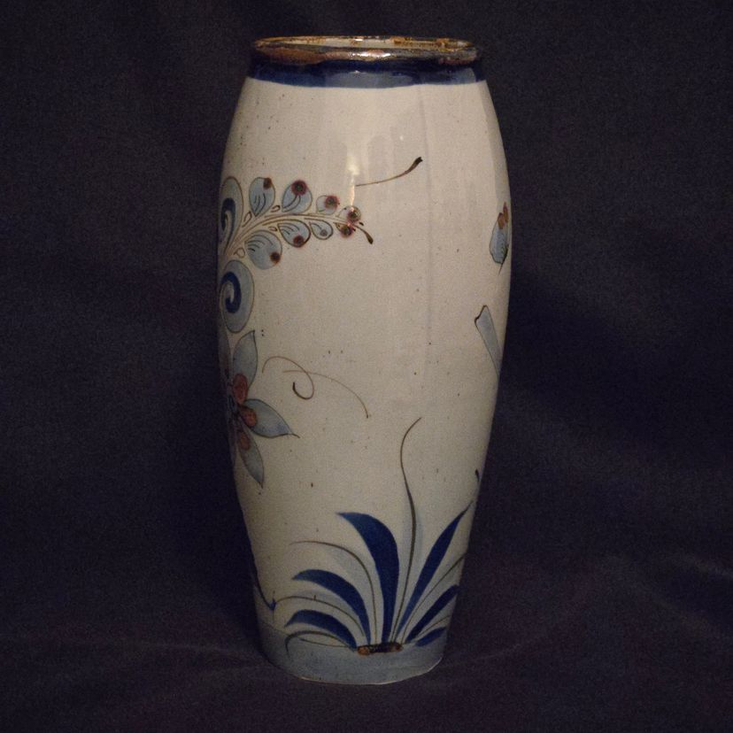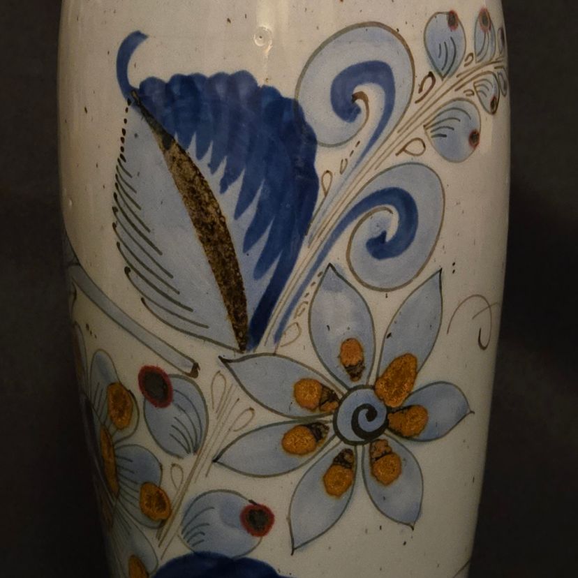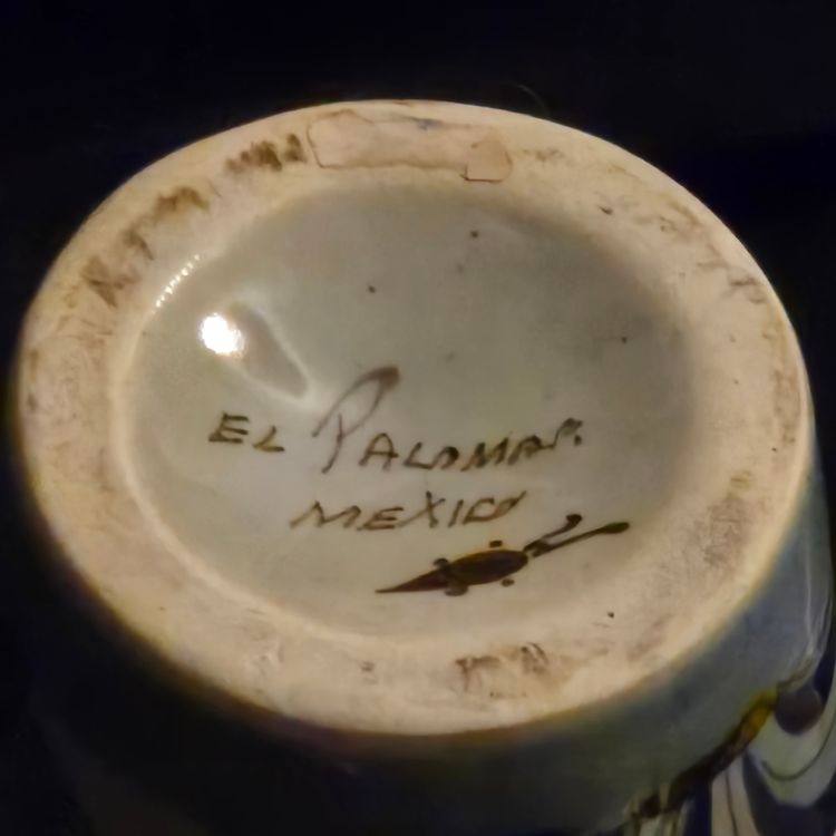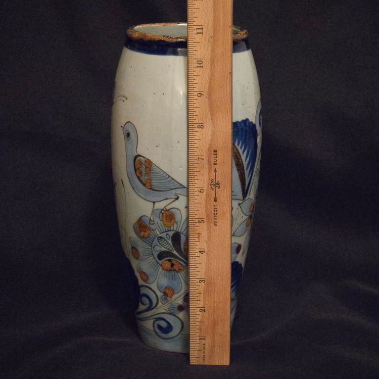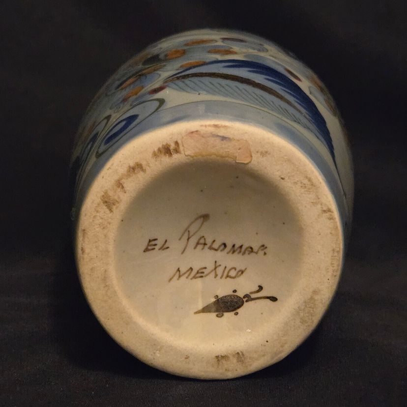 El Palomar Signed Mexico Vase Tonala Pottery Birds Floral Butterflies 11" Tall approximately Vintage. Used condition with the only small issues I see is both a residual sticker and dirt on the bottom + there appears to be seams running top to bottom. Please view all the photos and please ask any questions prior to purchase when possible.