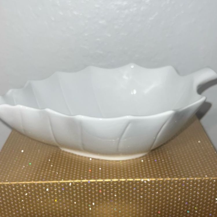 White large/deep ceramic dish for decor or entertaining. 12"W x 4"D. Perfect condition.