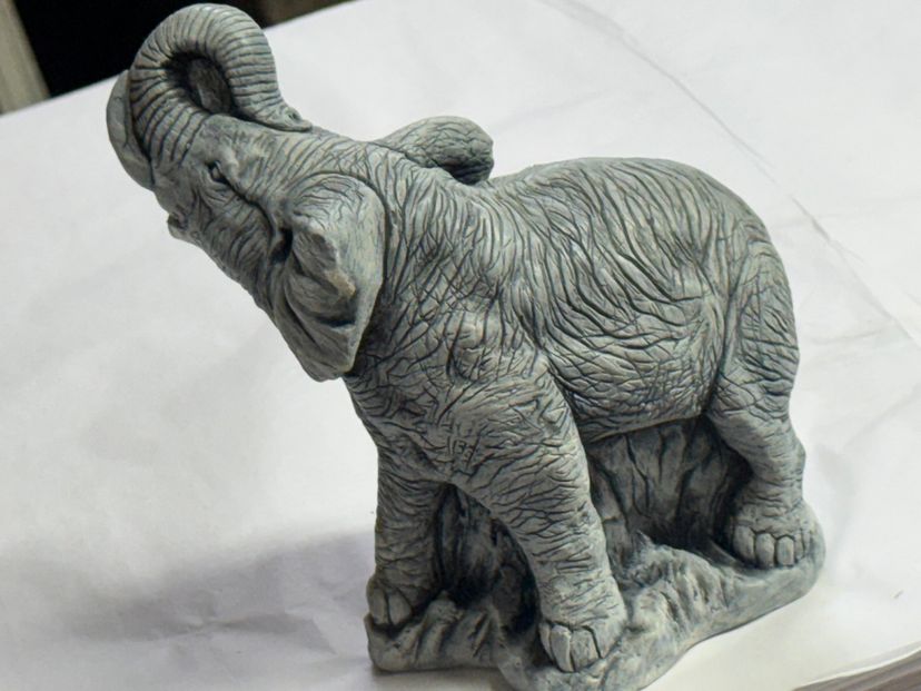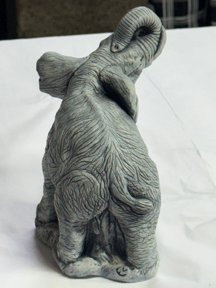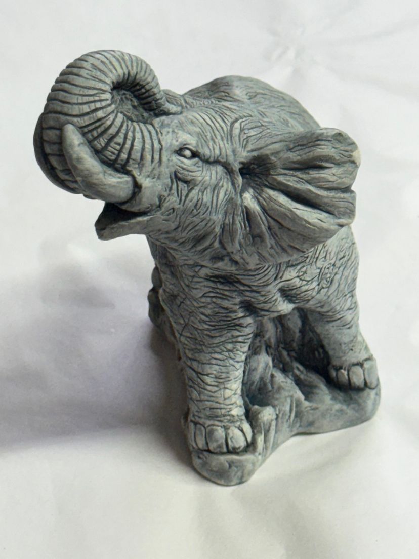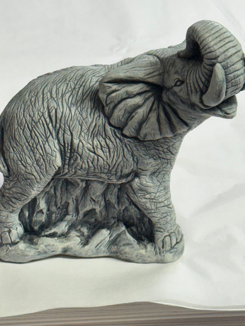 This is a souvenir elephant figurine made from volcanic ash from the 1980 eruption of Mount Saint Helens 6.5 inches tall