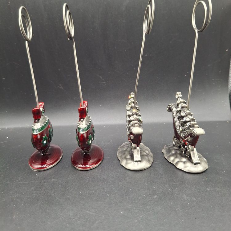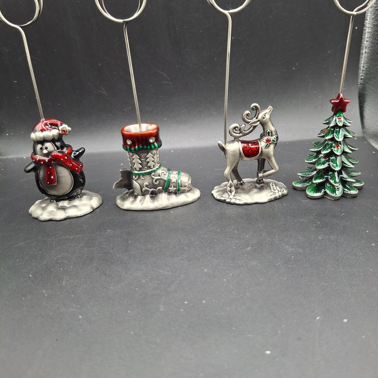 Once upon a festive season, a charming ensemble of Christmas-themed figurines emerged, crafted with intricate detailing and vibrant colors. These delightful photo holders, featuring iconic symbols like Santa's sleigh and a cheerful snowman, stand proud to showcase your cherished memories. With their whimsical designs, they bring a sprinkle of holiday magic to your space, perfect for celebrating the joy and warmth of Christmas.