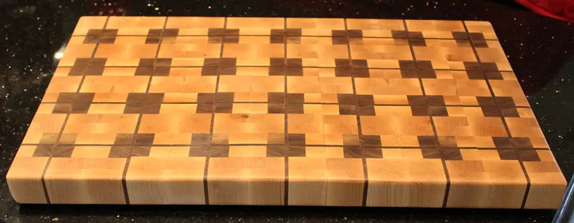 End grain Plaid patterned cutting board with Maple base.