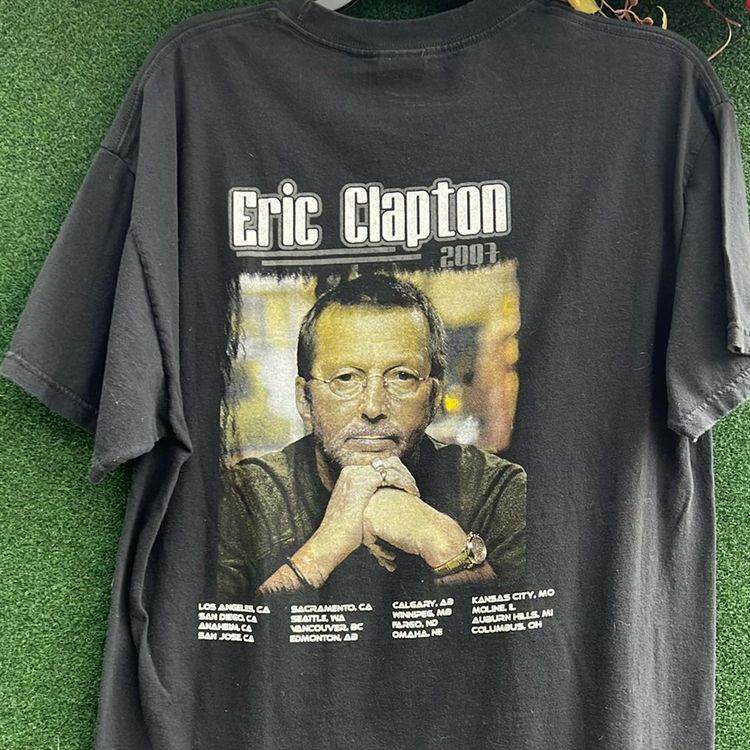 Eric Clapton 2007 tour shirt. Picture of Eric Clapton on back with cities. Pit to pit is 21 1/2 inches length is 27 inches.