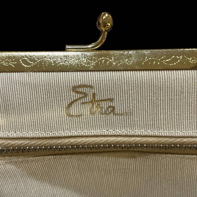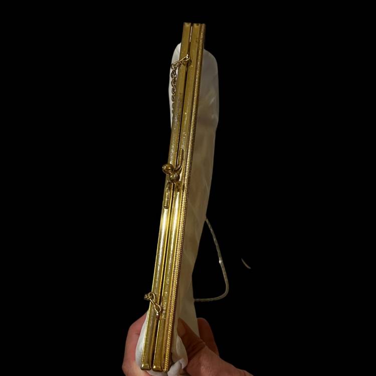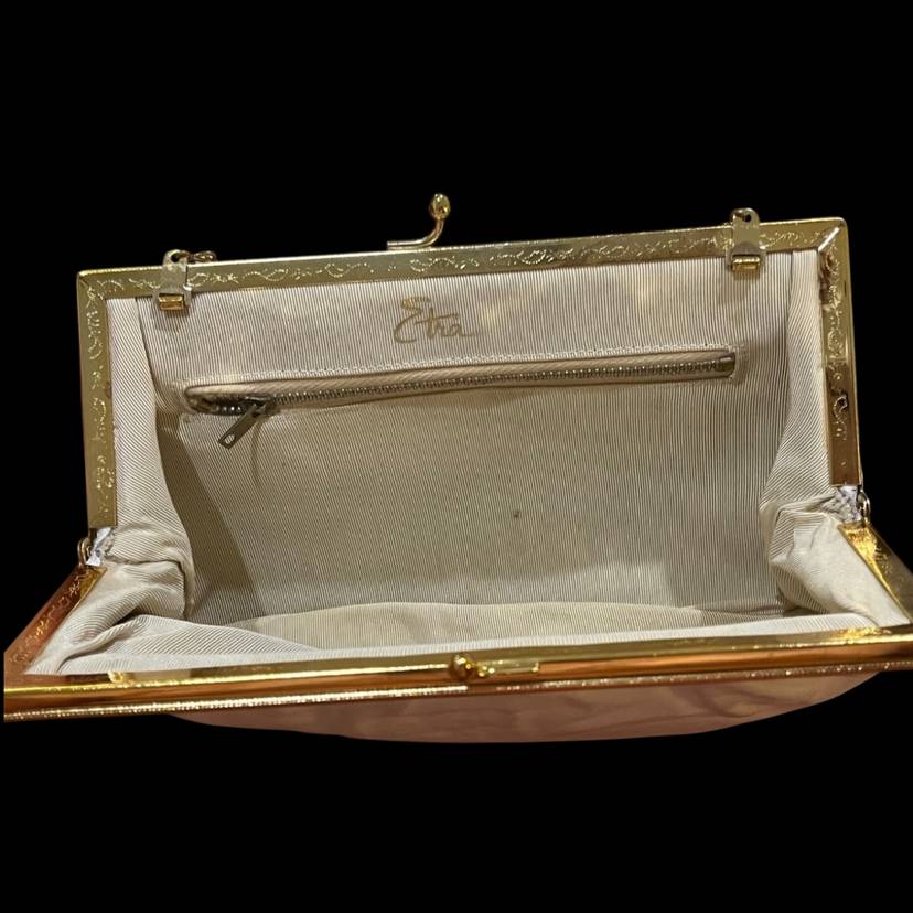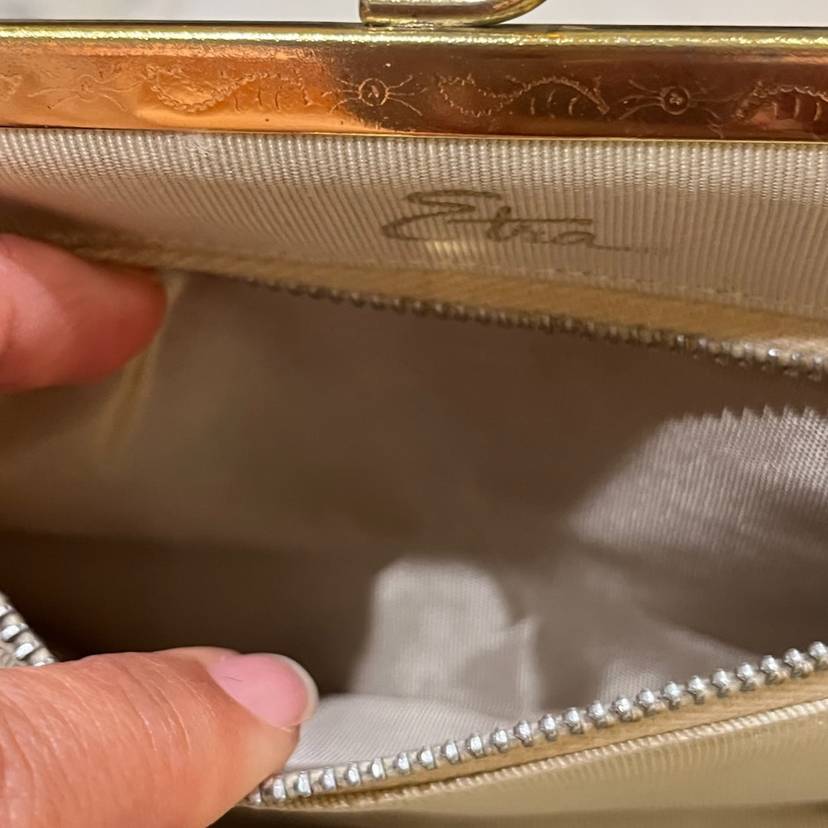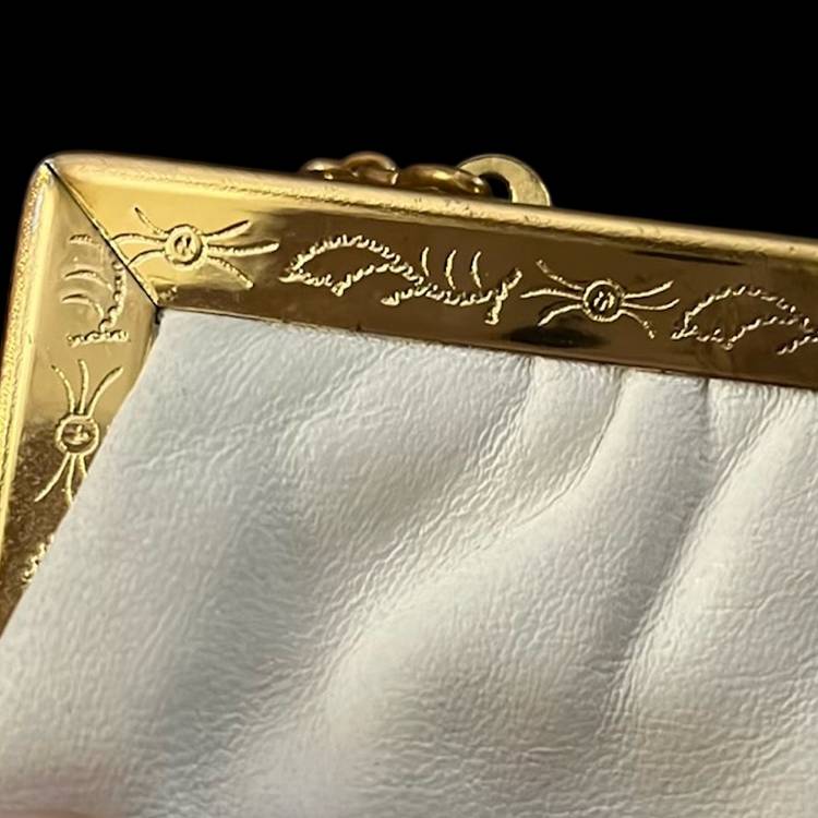 Excellent vintage condition-beautiful etched design on gold tone trim. Classic!