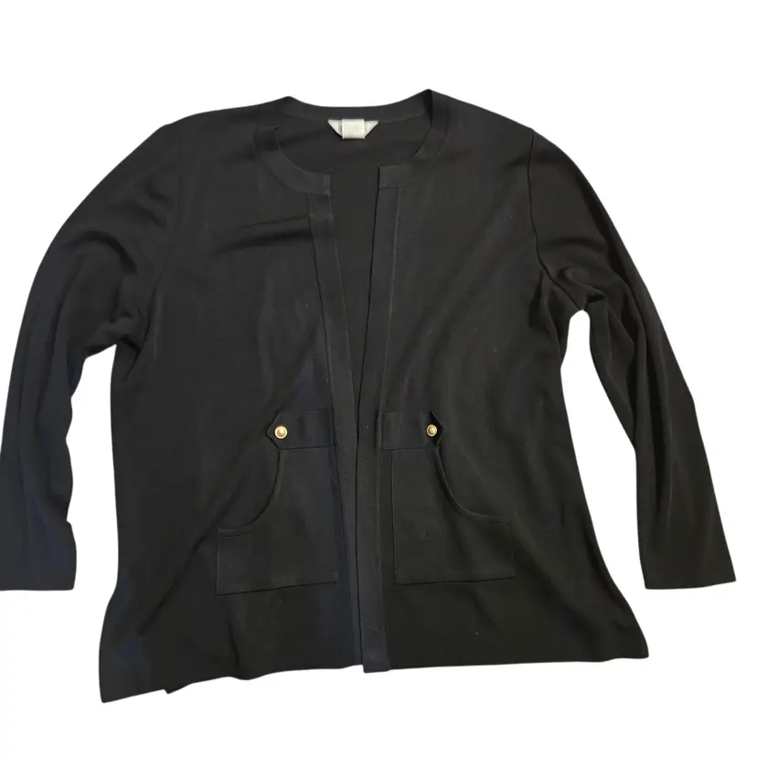 Exclusively Misook Woman Size 2X Black Open Front Cardigan Basic Gold Buttons