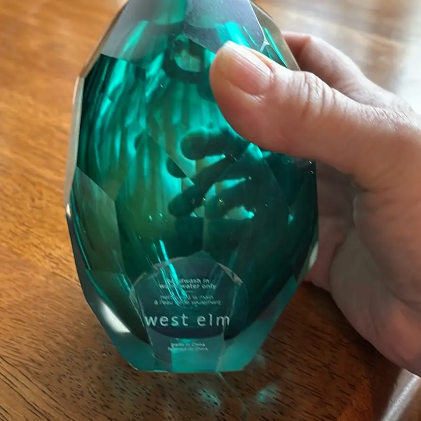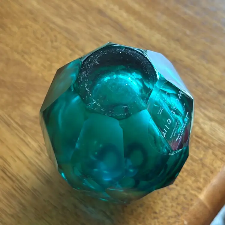 West Elm 5” heavy emerald green faceted glass vase. Perfect for the Holiday. No condition issues.