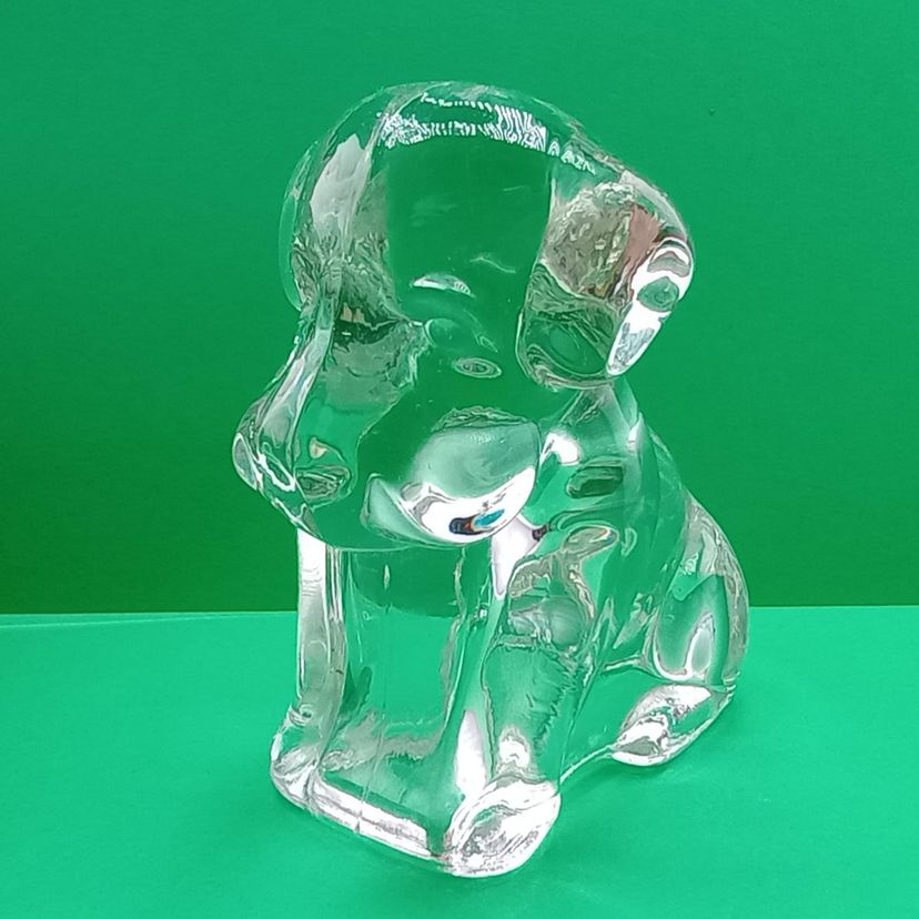 This mopey Federal Glass dog from the 1940s is a hollow candy container> it's in excellent vintage condition with no chips or cracks.