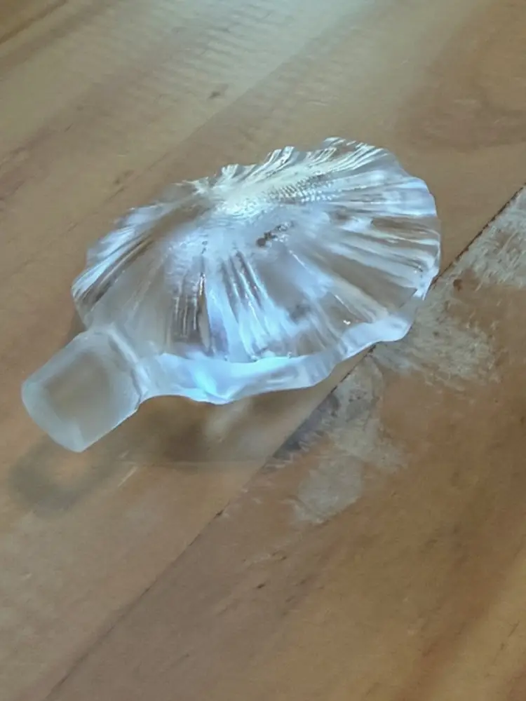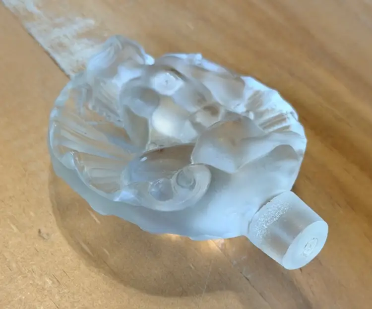 The Nude Perfume Stopper is a stunning piece made of frosted glass in a clear frosted color. This Lalique style stopper features an art nouveau design with a nude theme, adding a touch of elegance to any perfume bottle. Its sleek and artistic design makes it a perfect collectible decorative piece for those who appreciate unique and stylish items. Made of high-quality glass, this perfume stopper is sure to enhance the aesthetic of any space.