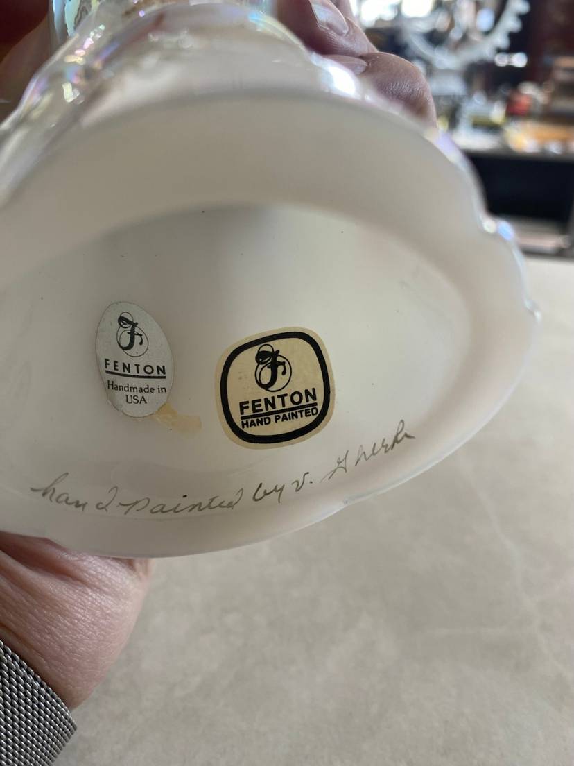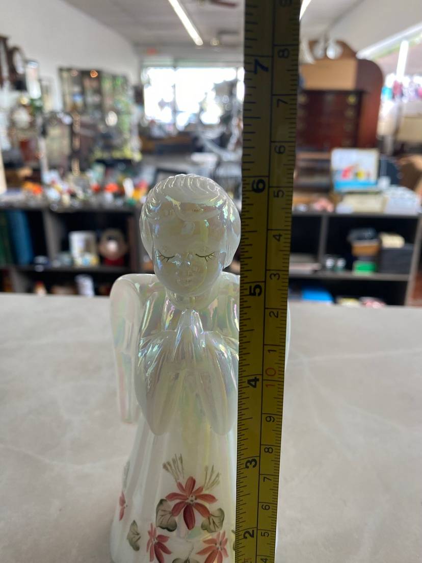 Vintage Fenton art, glass, poinsettia,white opalescent , angel figurine, signed