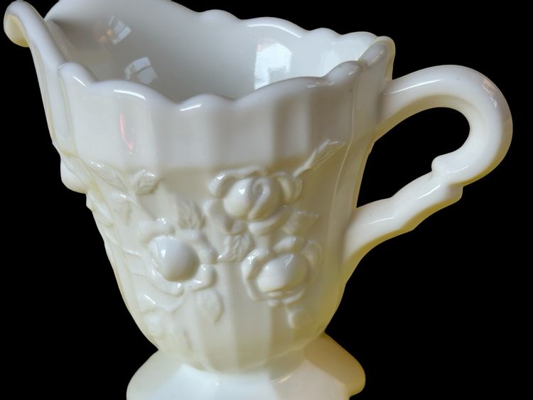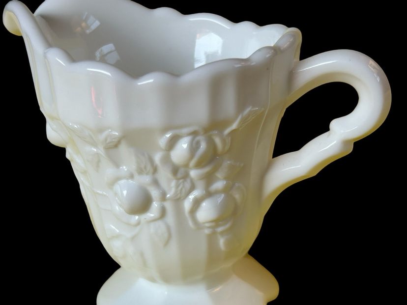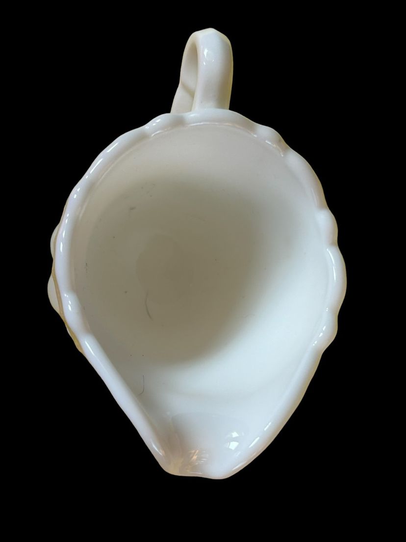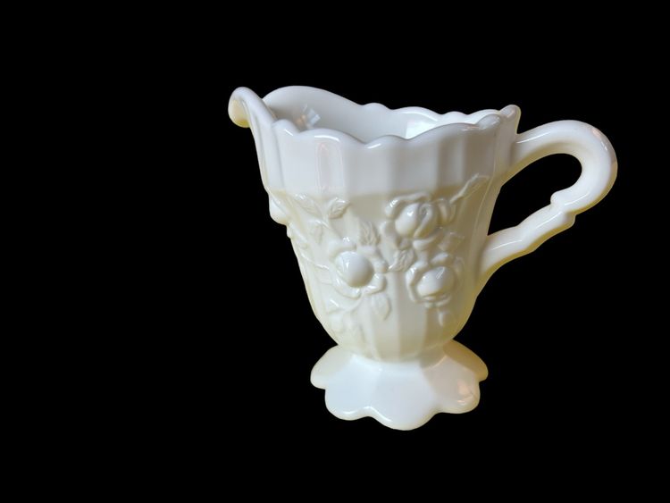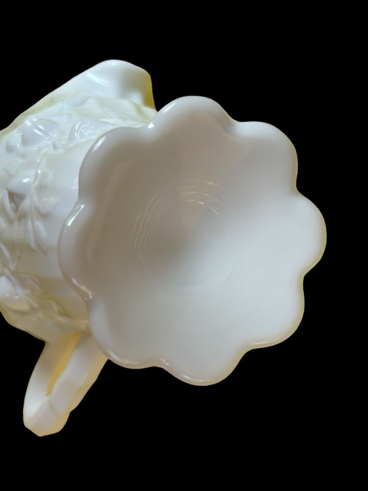 Pre logo. Fenton Item number 9203 MI. Approximately Creamer 4 1/2“high and Spout to Handle 5", No chips or cracks.