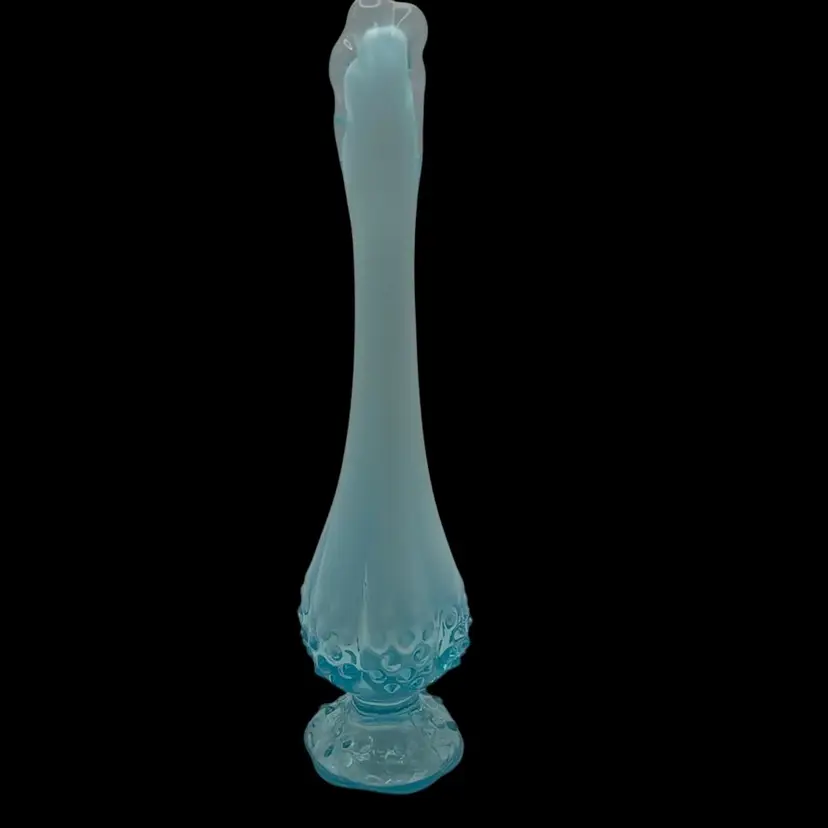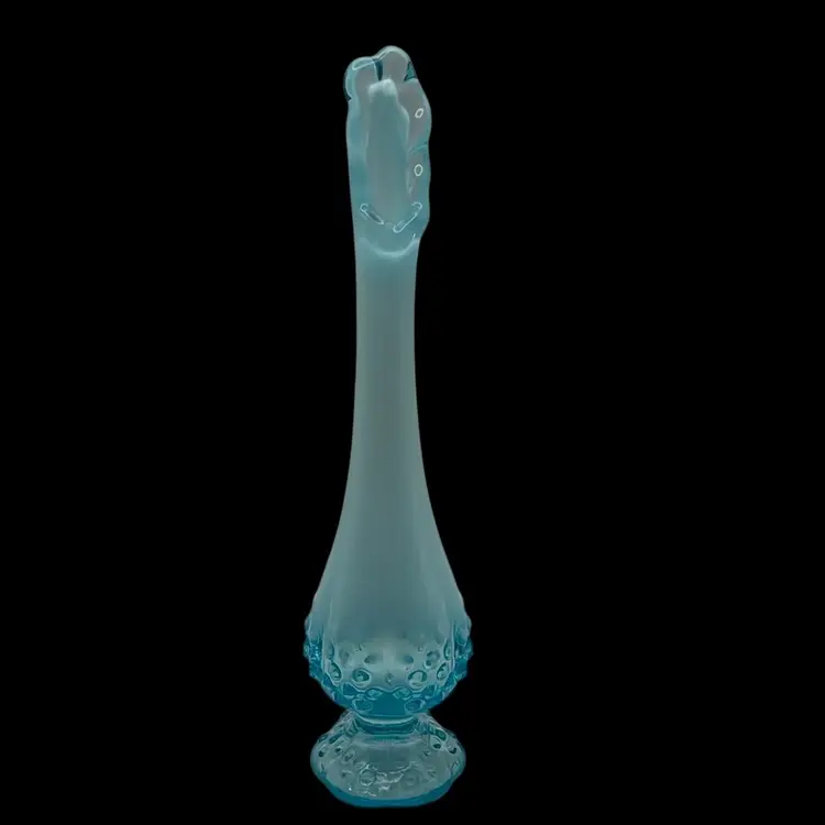 Featuring a milky glass opalescent color with a ruffled edge around the mouth. Mint condition!