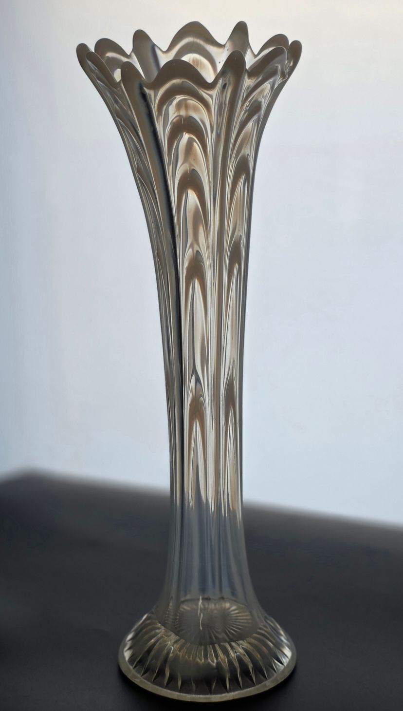 13" high 4" in diameter. In very good condition no chips cracks or cloudiness