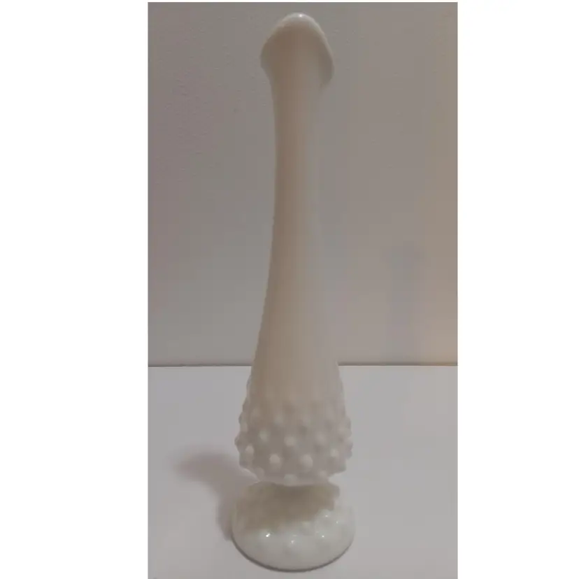 Fenton Footed Hobnail Milk Glass Swung Vase; 9.50" T x 2.5" W; Excellent Condition! No Chips or Cracks! Stamped Fenton on bottom; A Beautiful Addition to any Collection!