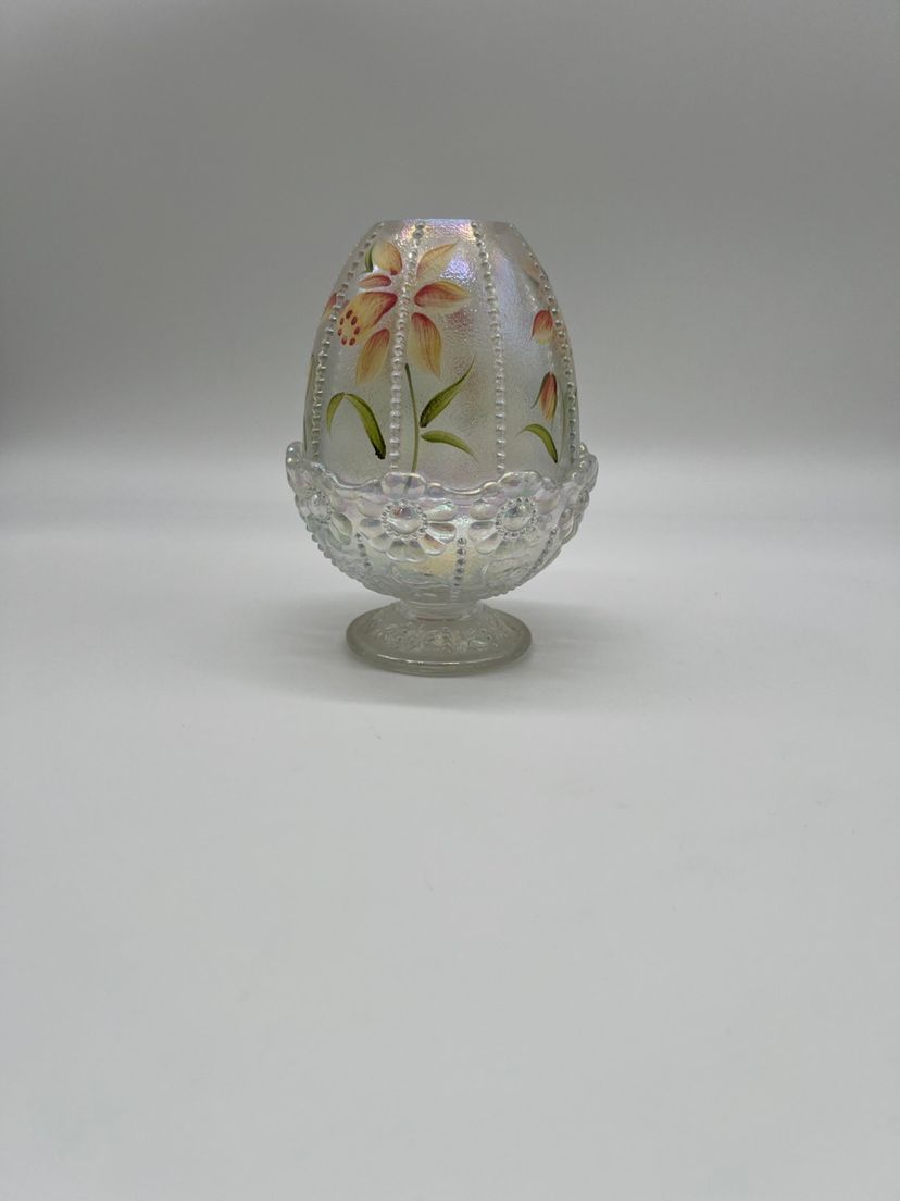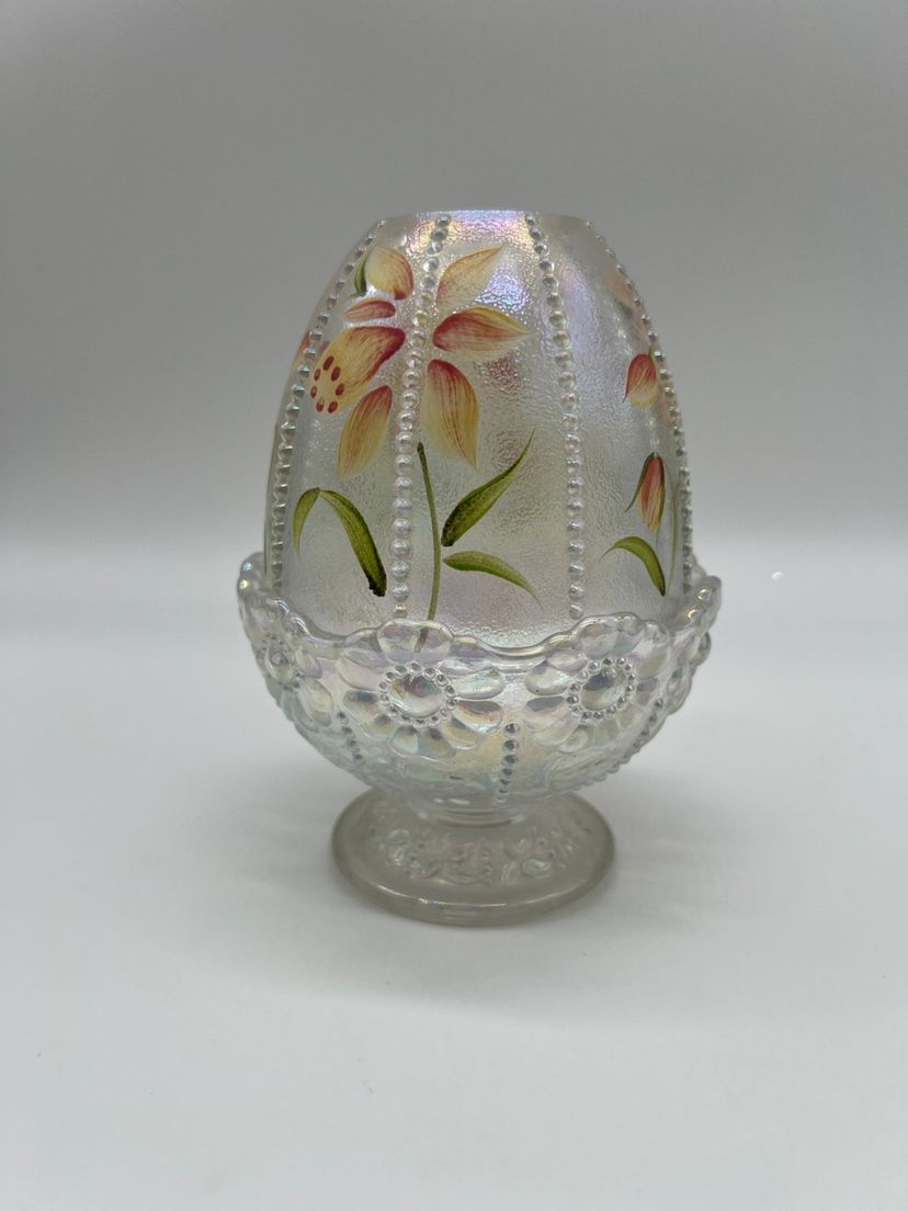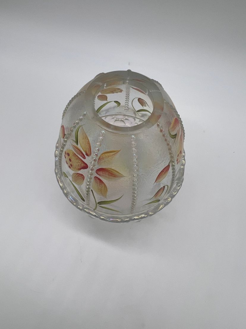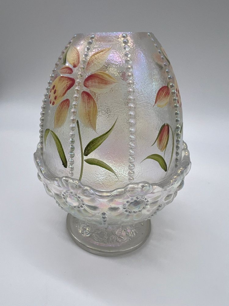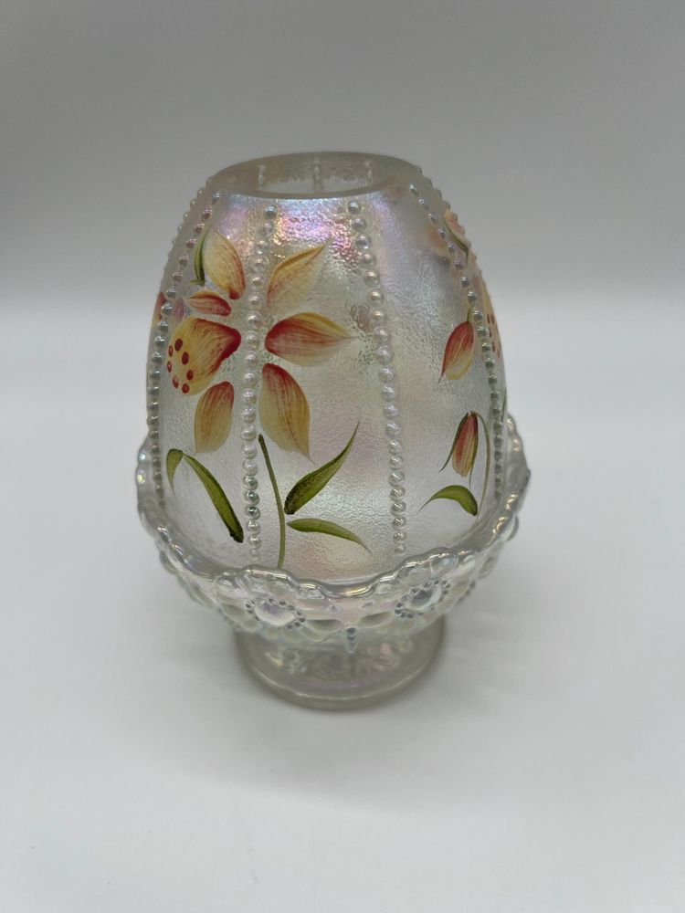 In excellent condition, this fairy lamp is free from chips or cracks, showcasing the quality craftsmanship that Fenton is known for. Whether placed on a bedside table, a living room mantle, or as a centerpiece in any setting, this lamp is sure to draw admiration. This Fenton hand-painted fairy lamp is a wonderful addition to any collection or a unique gift for someone special who appreciates fine glass artistry.