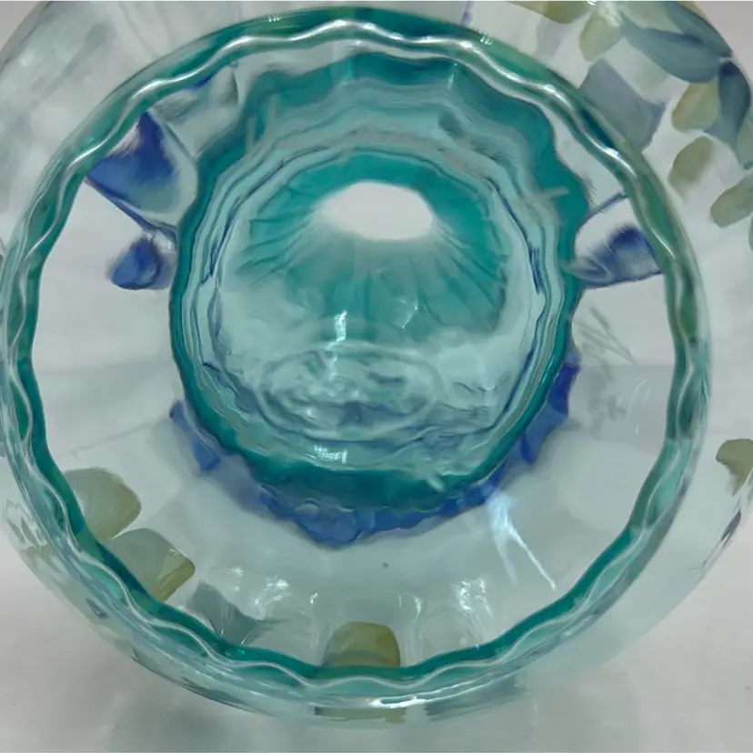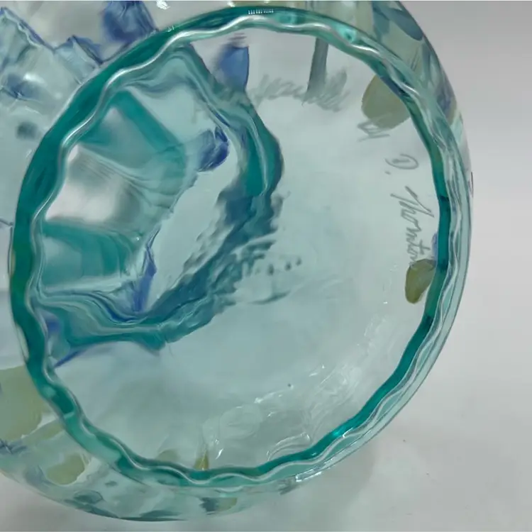 53/4”T 41/2”W in wonderful condition no chips, cracks or brakes has maker mark and a sticker maker mark.