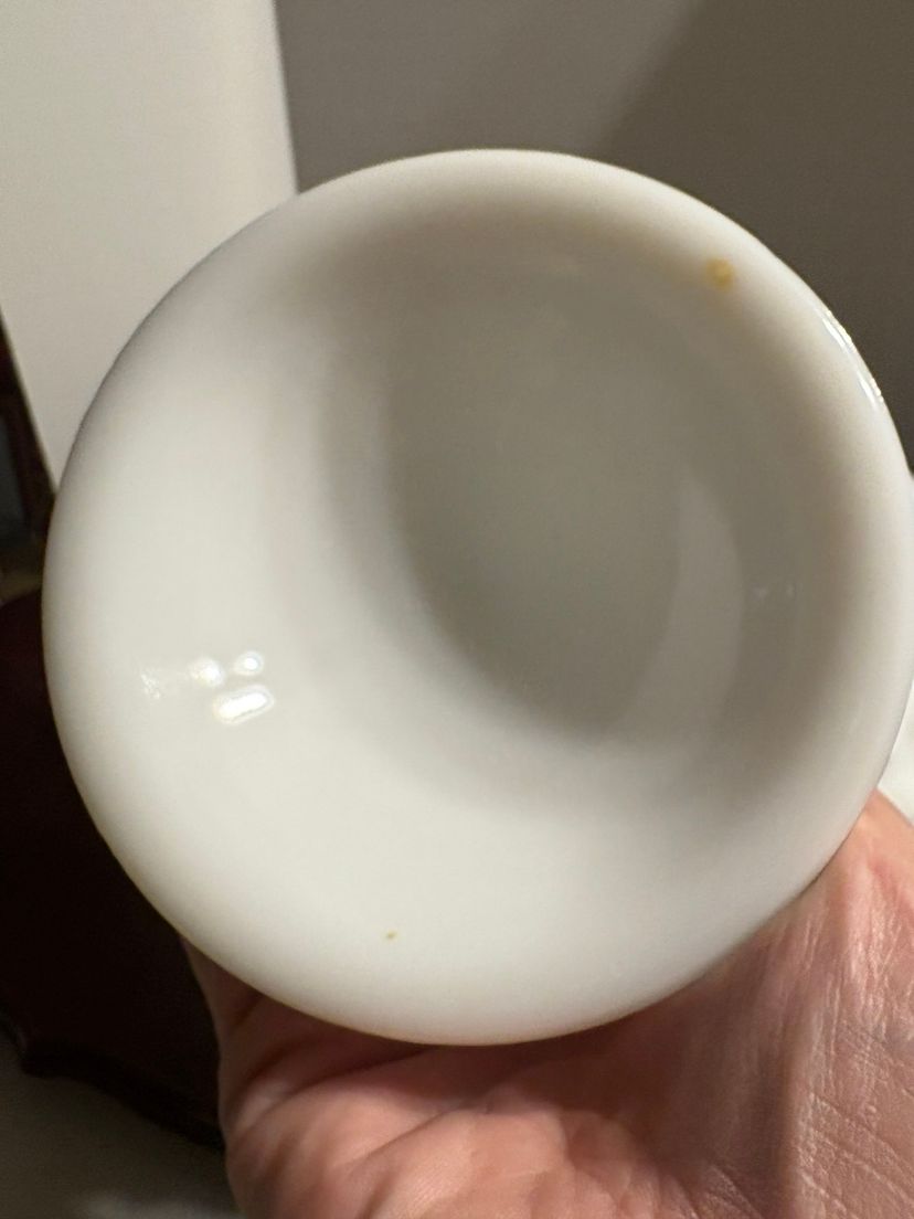 5.75” tall and 7.5 wide mouth, double crimped edge