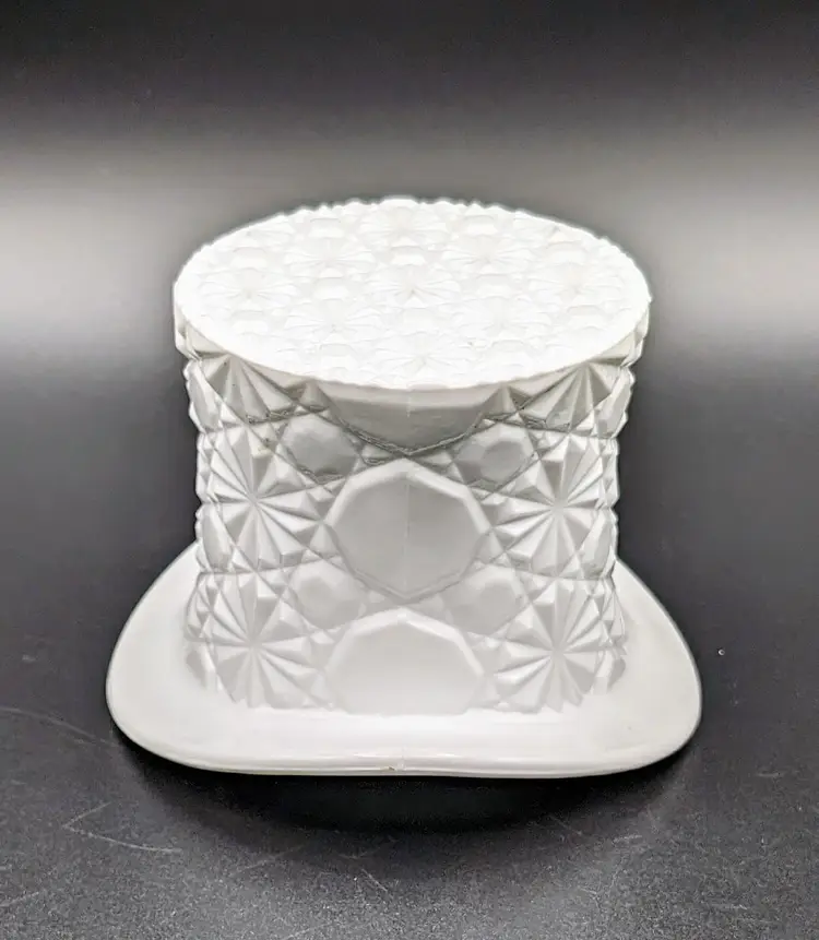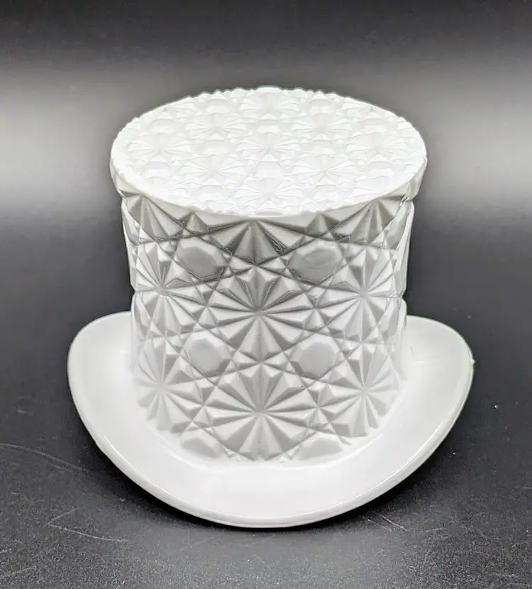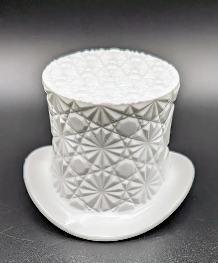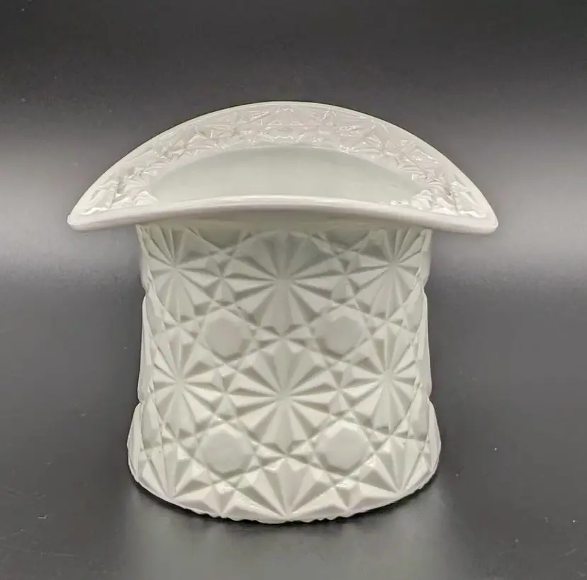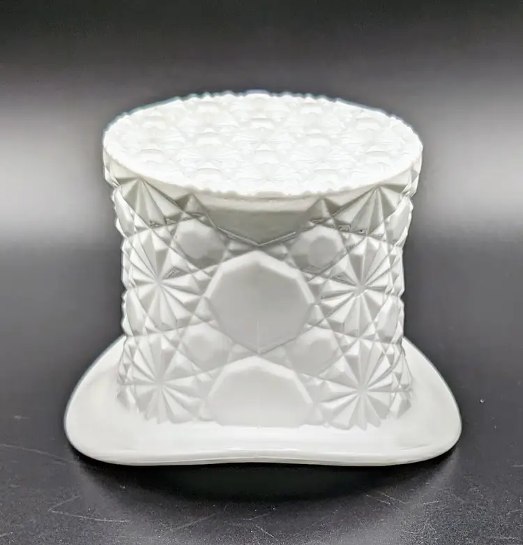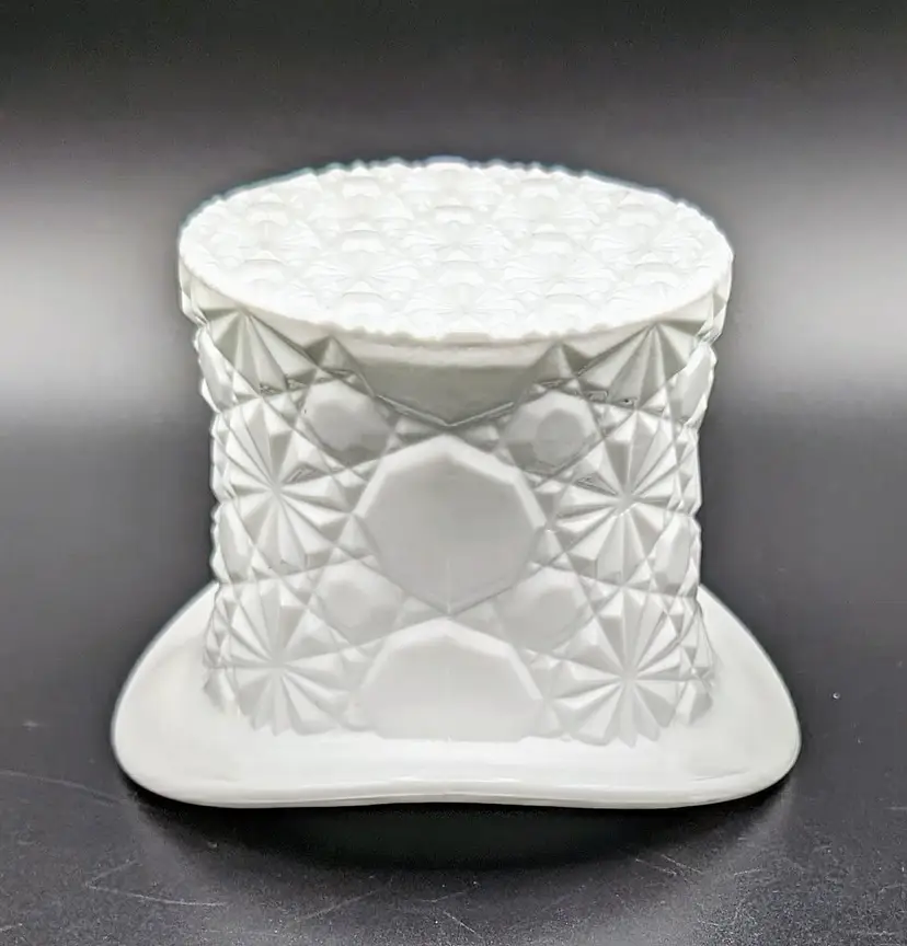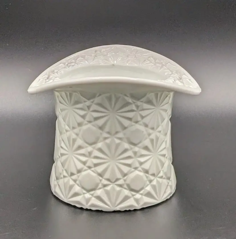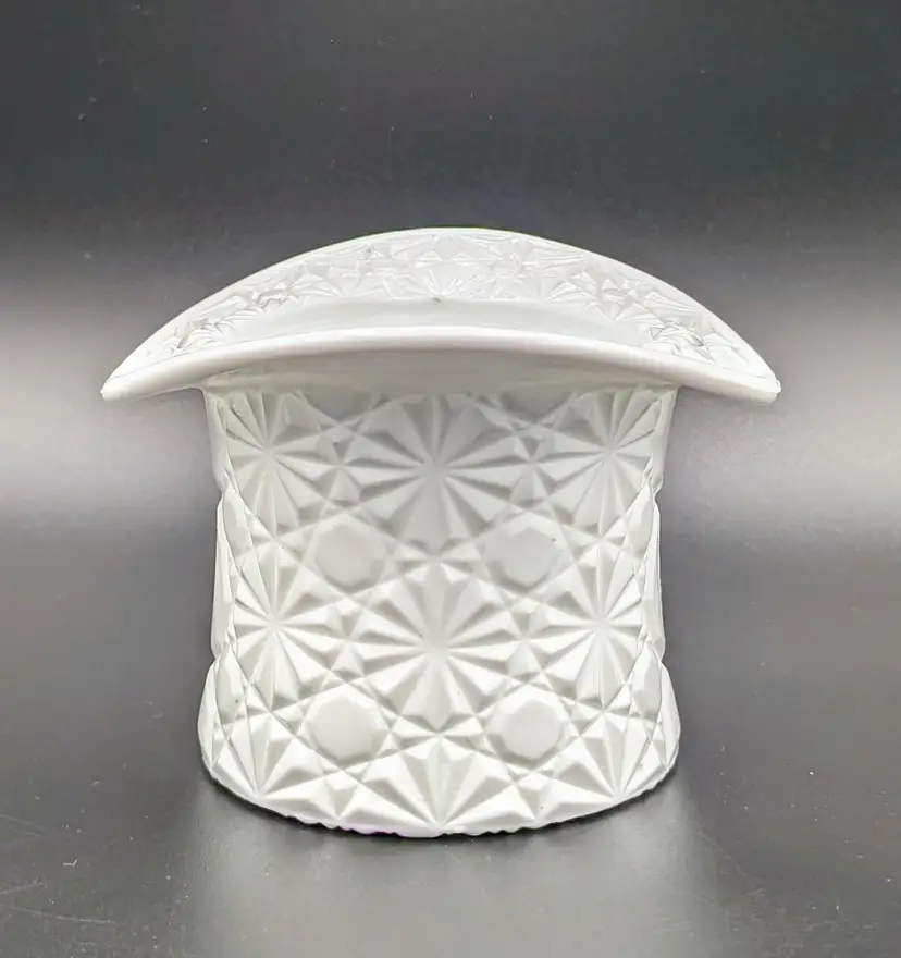 Made in the 1960's to hold cigarettes but would be fantastic as a candy or trinket dish,makes a great vase or add to your displays and decor for the holidays. Excellent Used Condition. No chips or cracks. Can see mold marks due to pressed glass process. See pictures for details. Measures approx 4.5" wide diameter x 3.5" high x 2.75" deep.