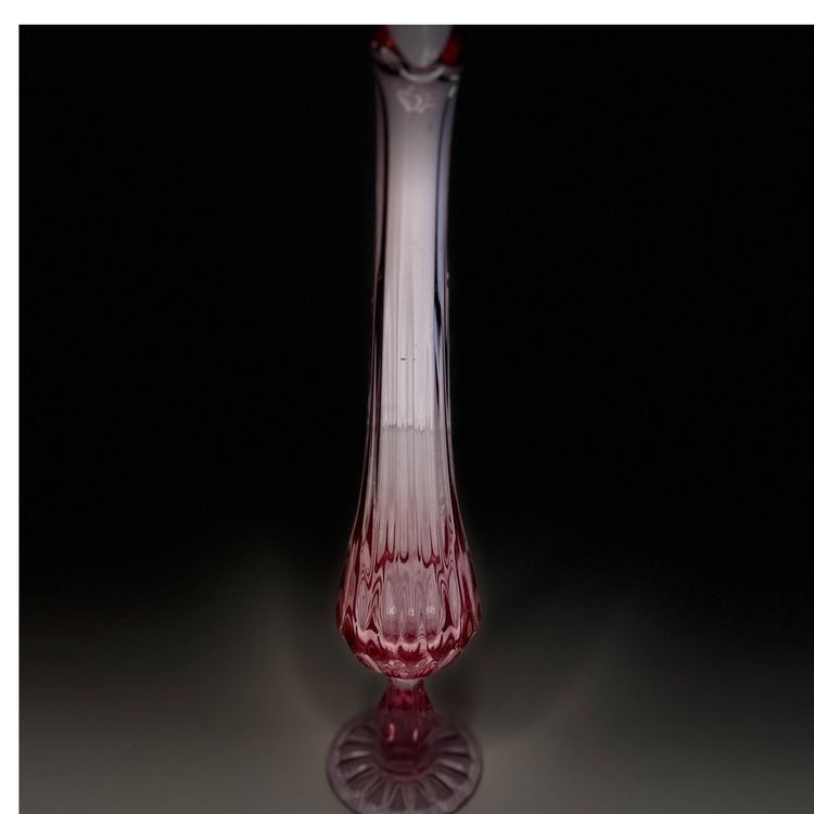 This cute 12" Fenton Swung is such a pretty pink color and great size to fit in to a glass collection. As seen in the pictures it does have slight water staining and needs to be cleaned. Please see pictures.