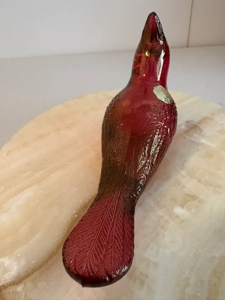 Fenton Ruby Red Undecorated Cardinal Bird Stands 3 inches tall and 5 inches wide at the base Beautiful coloring on this piece.