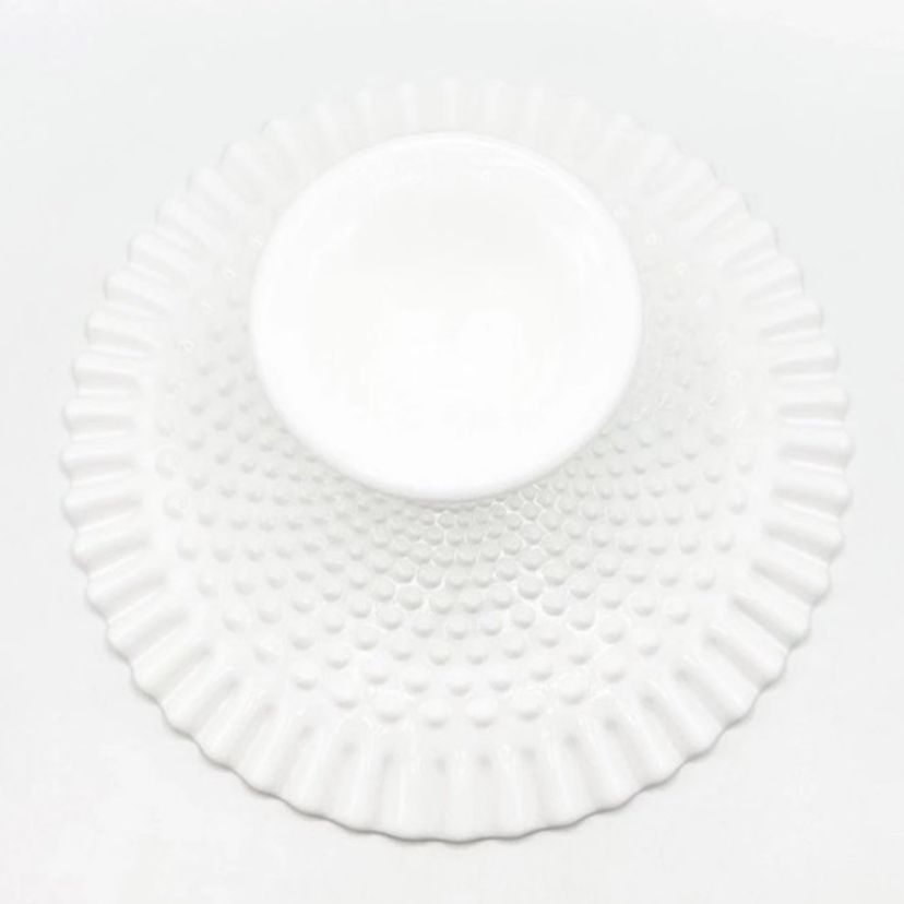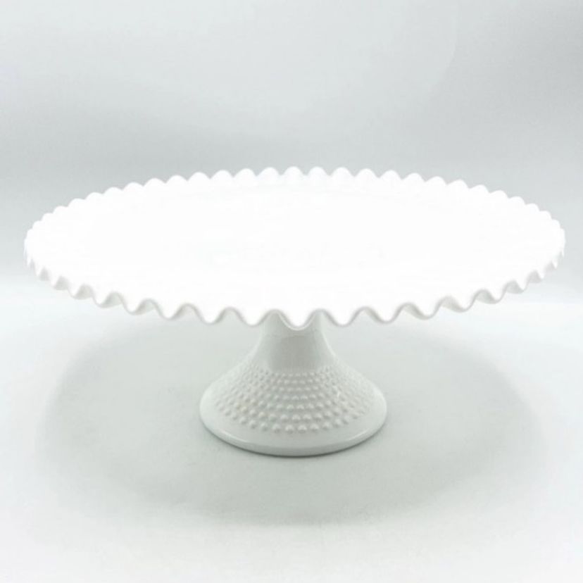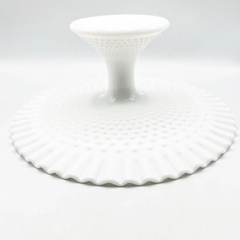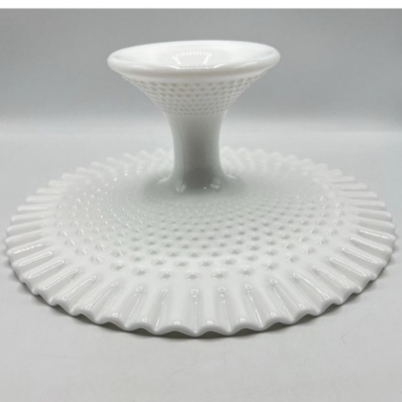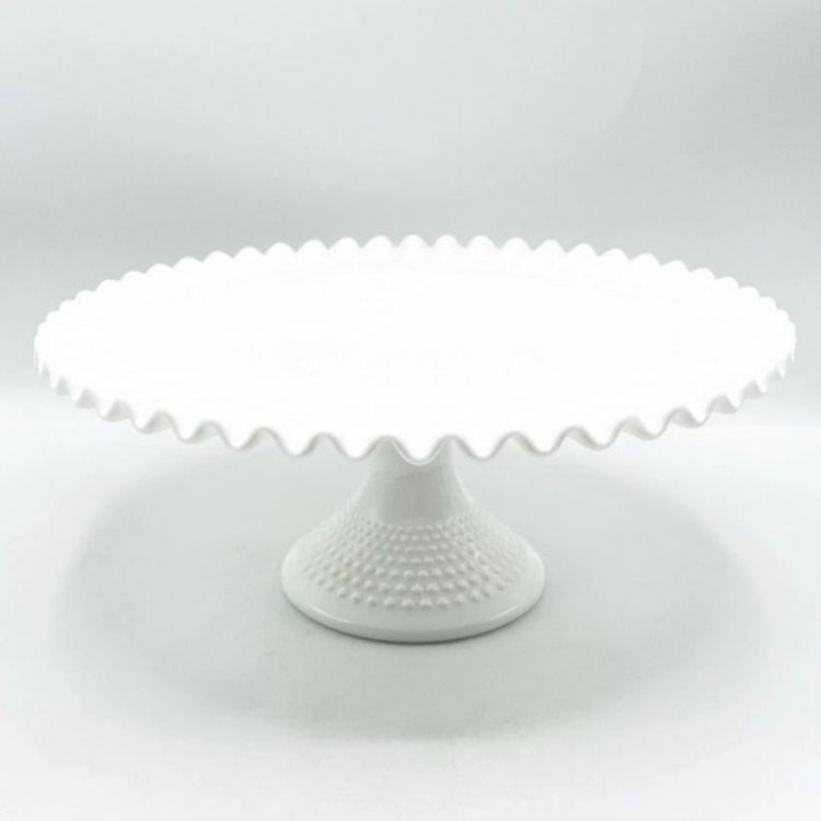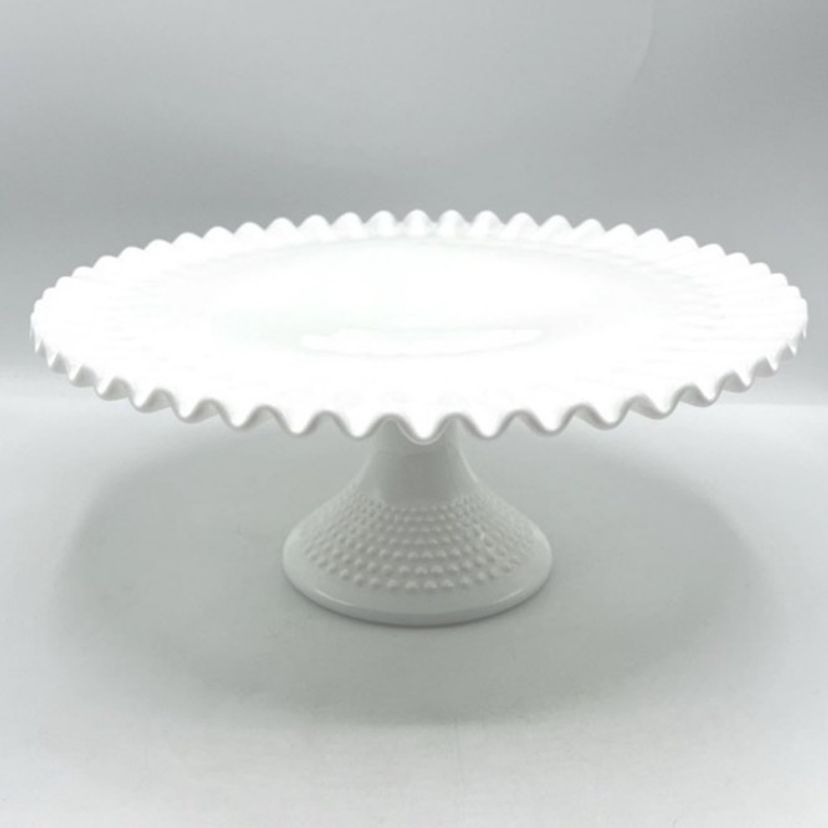 FENTON White Milk Glass Hobnail Cake Plate Stand Fluted Edge 12.5" x 5.5" *READ