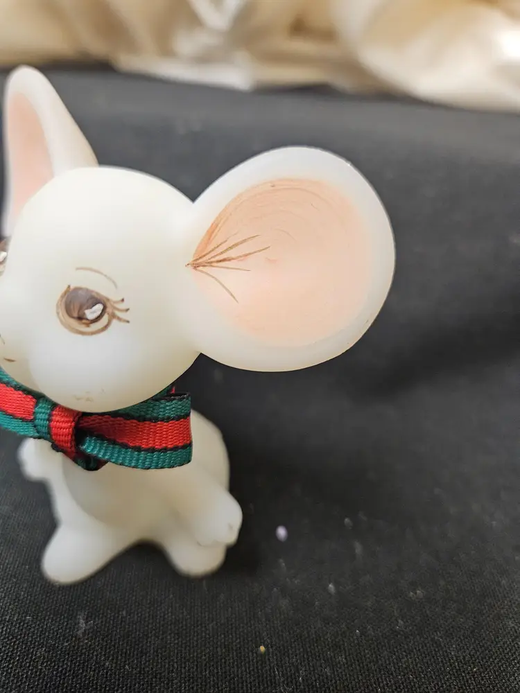 Cute as can be - matches bear in my other listing. Note: Bottom has some weird brownish spots that look like satin is worn off, or maybe it is paint. I can't tell - see pics.