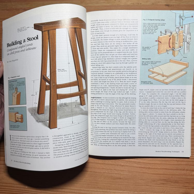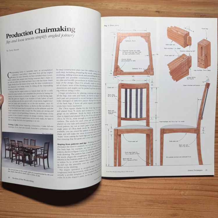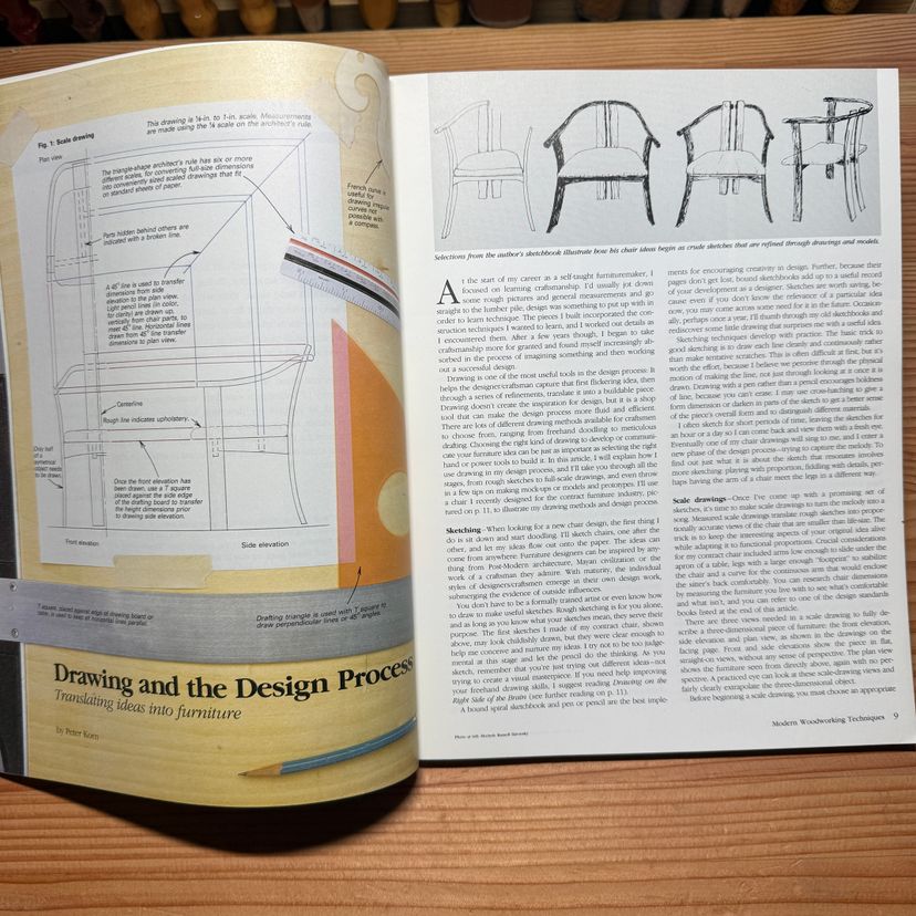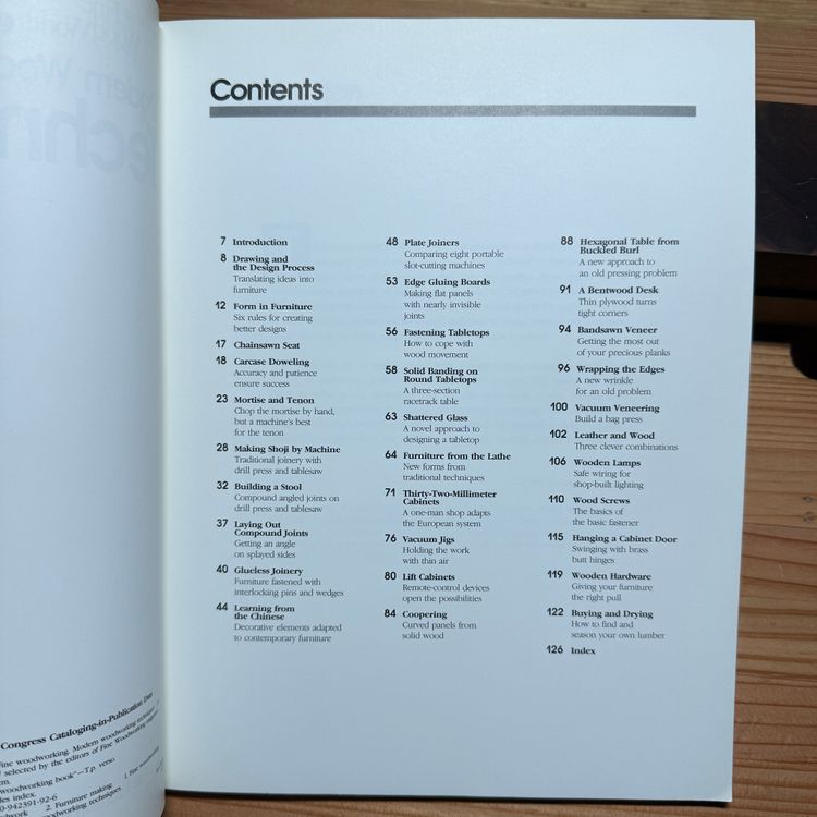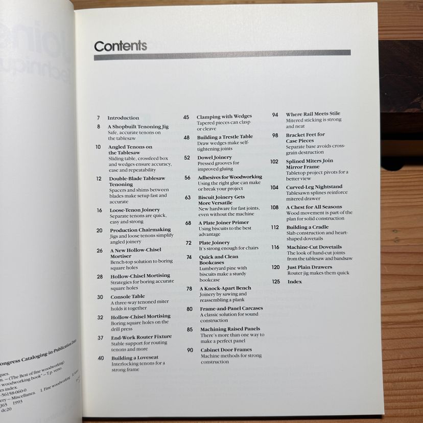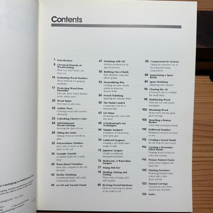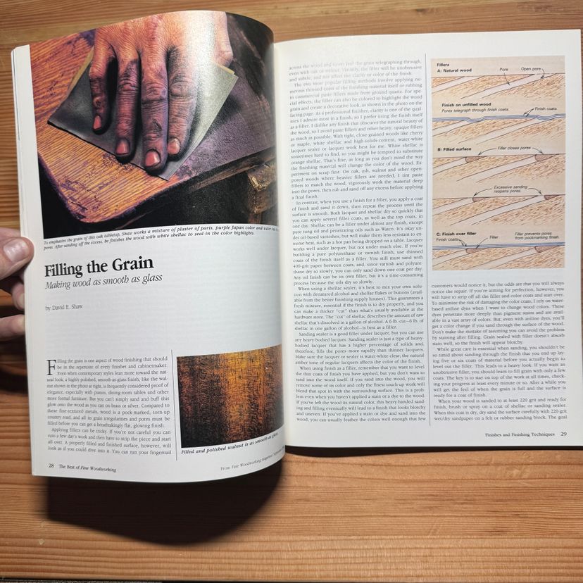 Peter Korn's Basics of Craftsmanship. Fine Woodworking's Finishes and Finishing Techniques, Joinery Techniques, and Modern Woodworking Techniques. "Modern" may seem a bit of a stretch since it was published in 1991, but nearly everything in the book is relevant today. All book covers have some fading/wear but the interior pages are pristine.