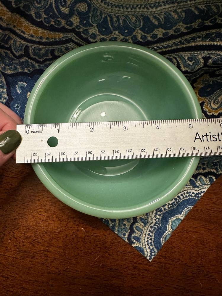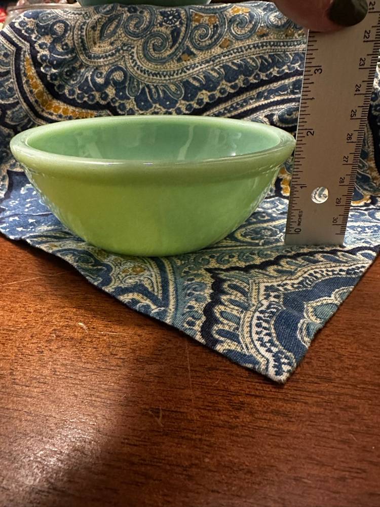 Over 5 inches across and 2 inches high, this sweet salad bowl is an adorable addition to your jadeite collection