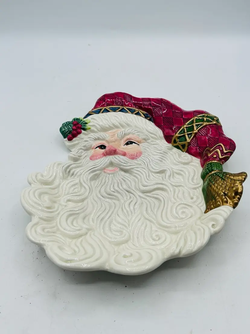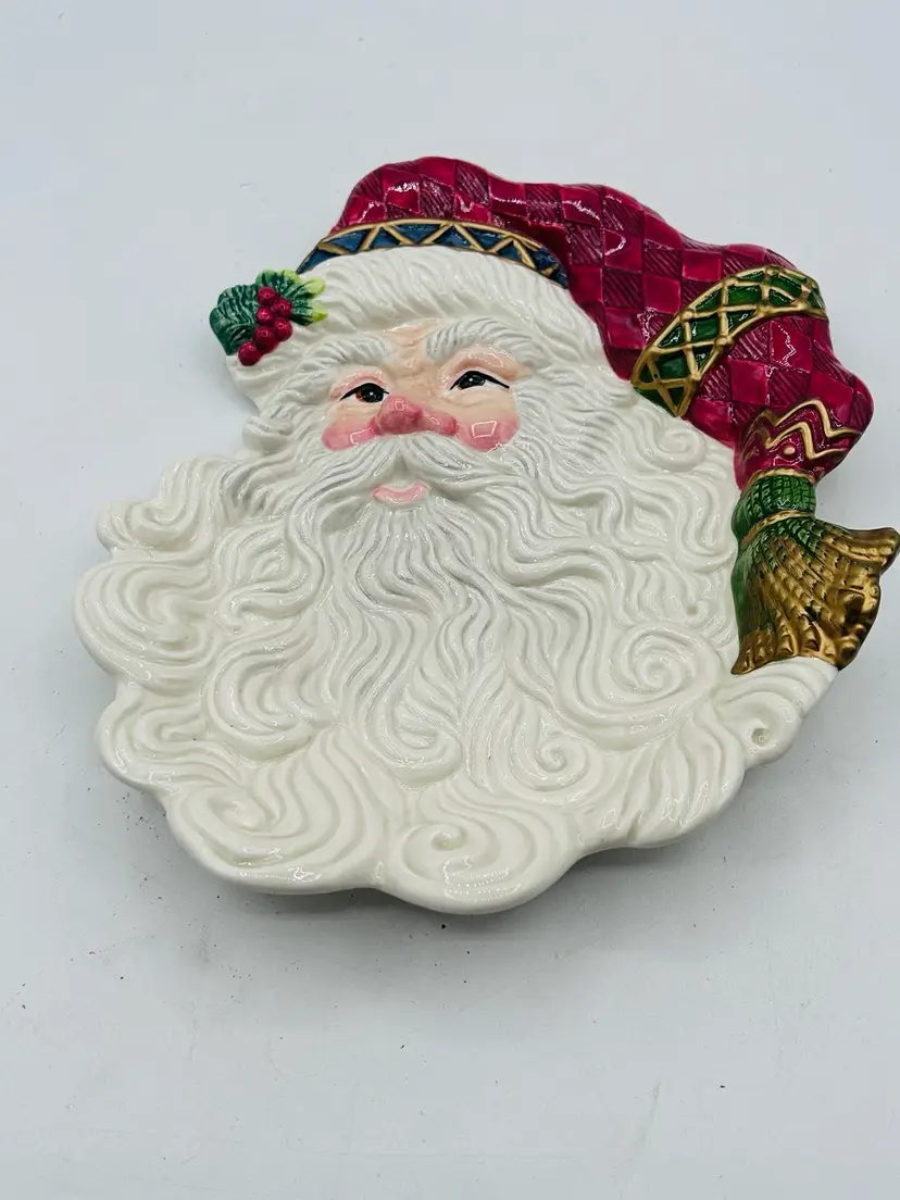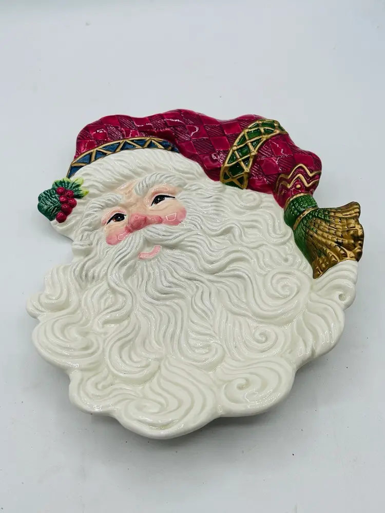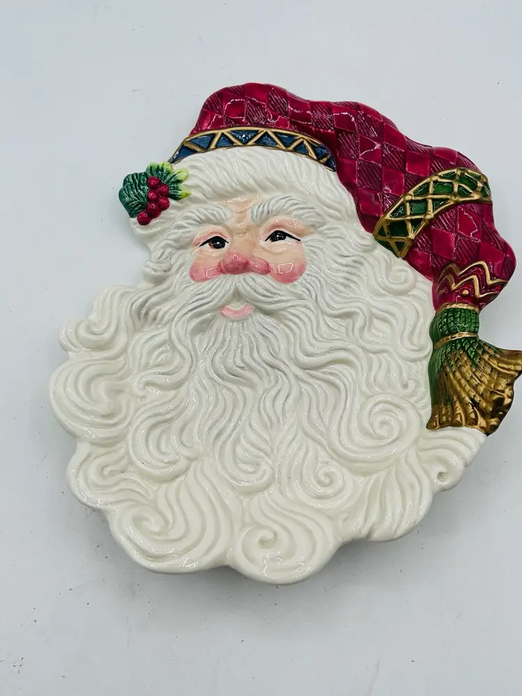 Santa is able to be hung on wall. No damage very good condition measures 12 inches tall by 8 inches wide at the widest part .