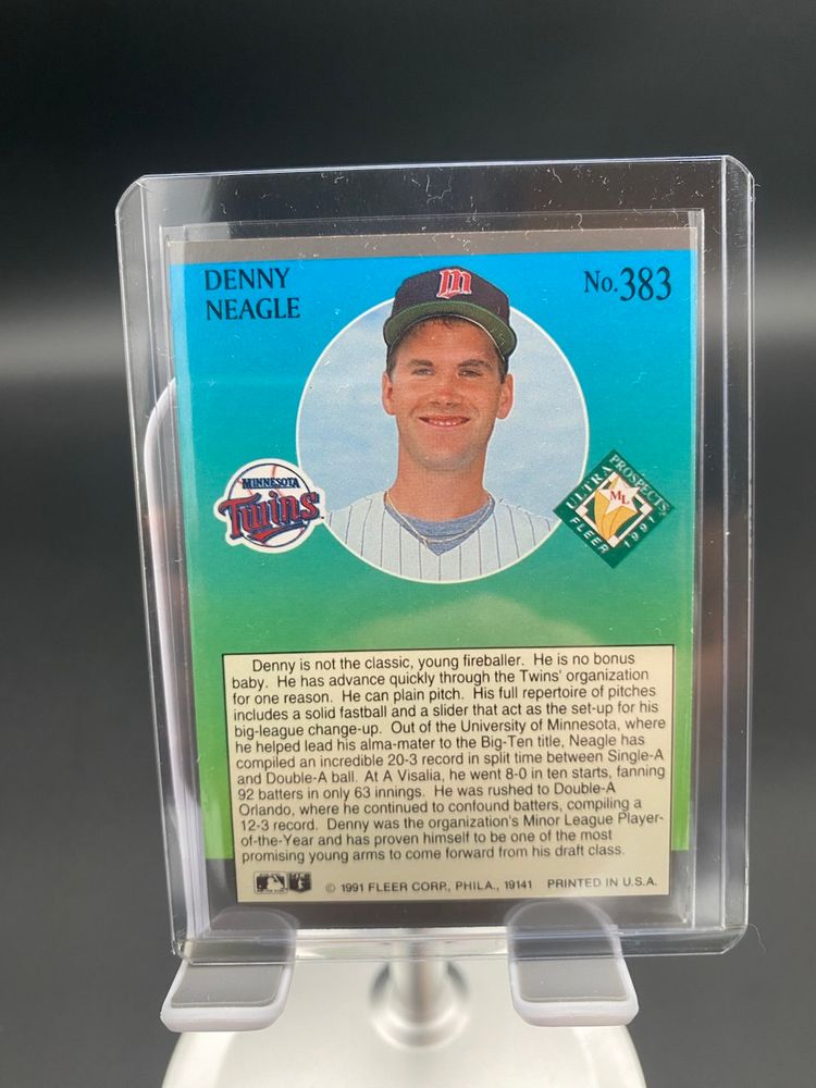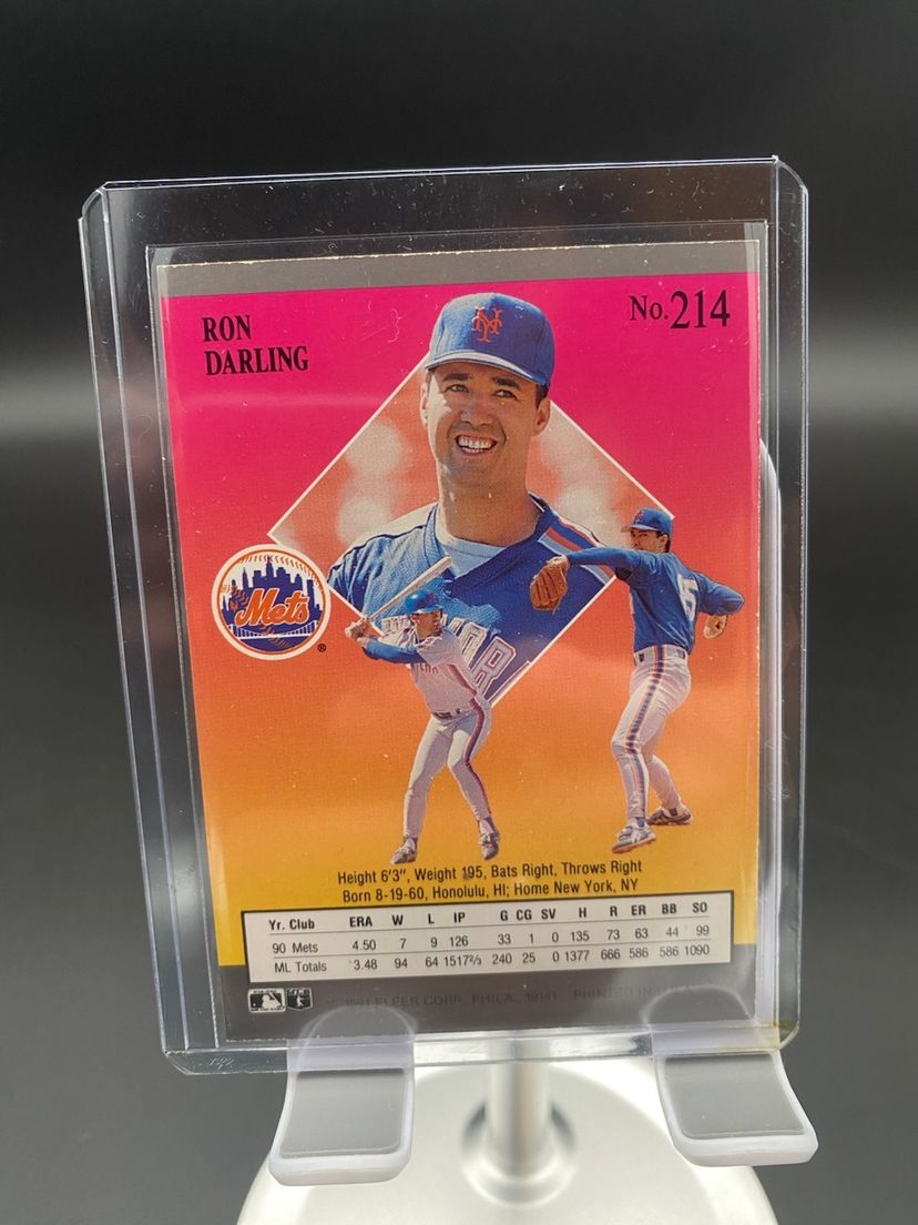You are purchasing a pair of MLB Trading Cards from the 1991 Fleer Ultra line. This Listing includes one New York Mets Ron Darling Card #214 and one Minnesota Twins Denny Neagle Card #383. These Cards are in overall good condition. See images for a closer look.