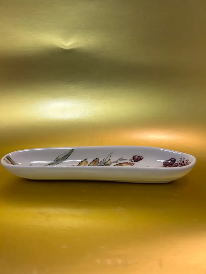 This elegant, oval-shaped ceramic dish features a delicate floral design, adding a charming and sophisticated touch to table settings.
