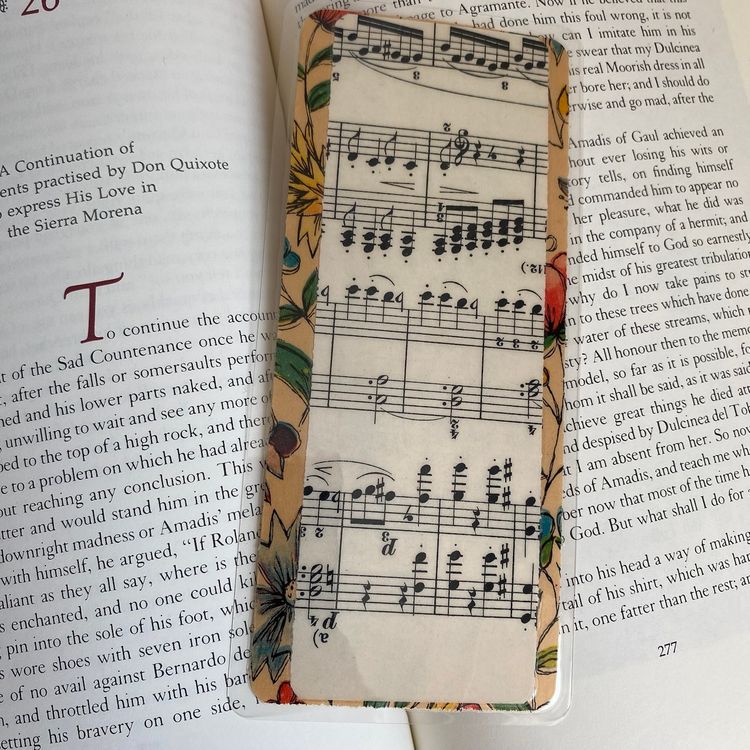 Made from Beethoven sheet music and vintage gift wrap, these bookmarks are single sided and laminated with 5MIL. No tassel.