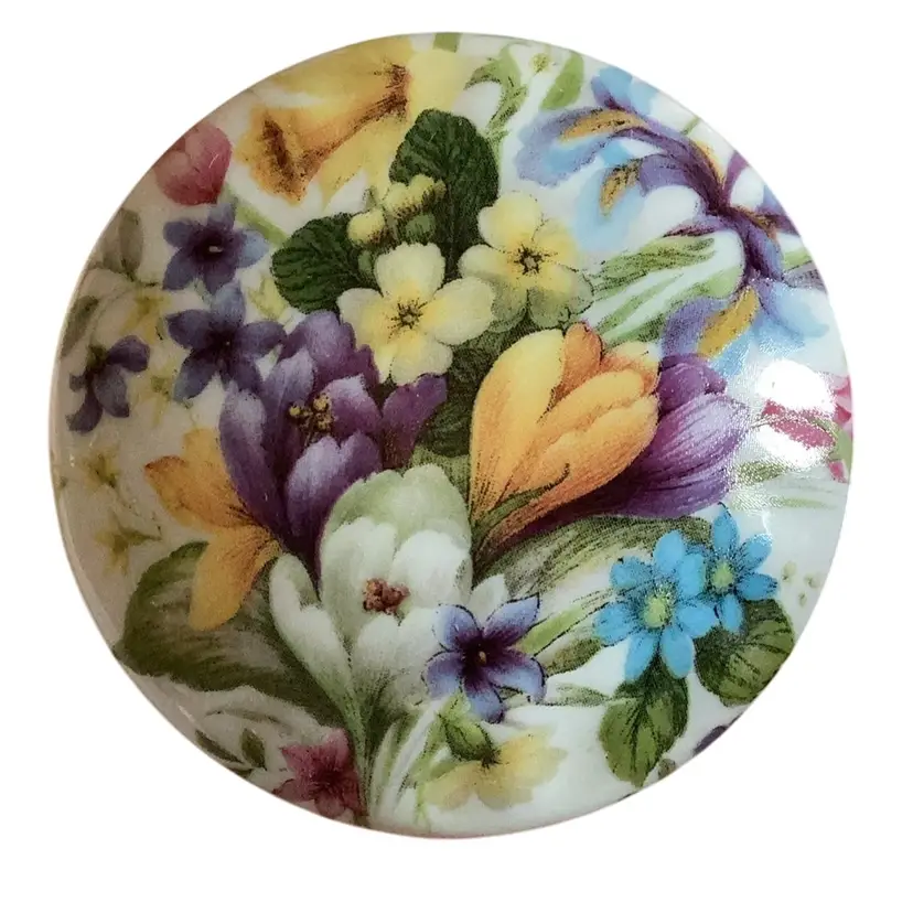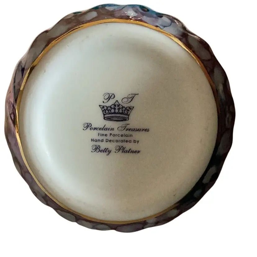 Floral Trinket Lidded Dish Hand Decorated 3.5” Round 2” Tall