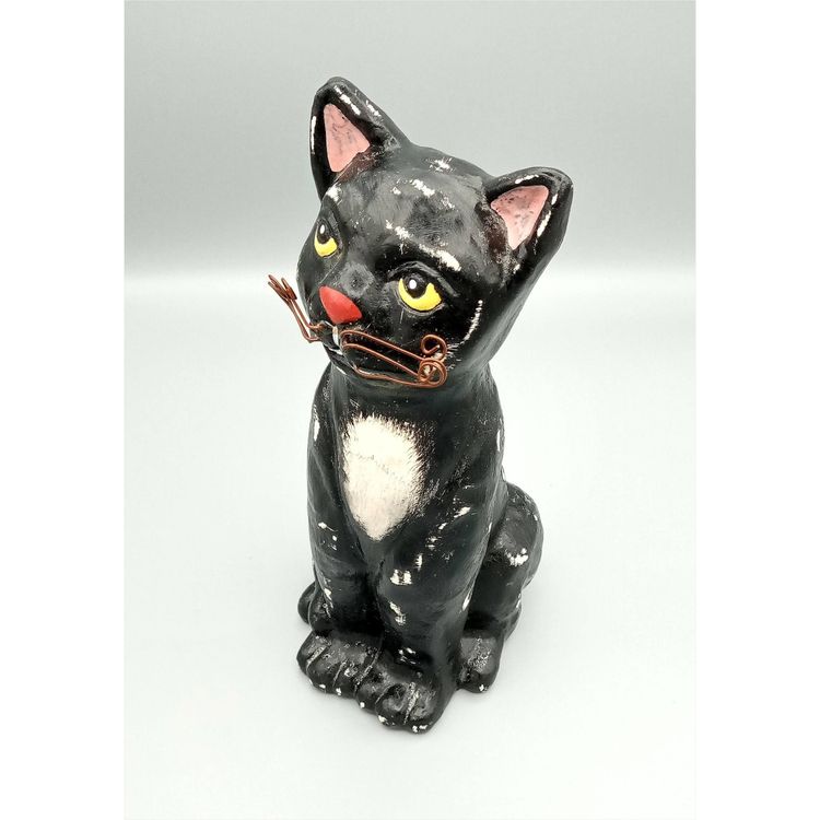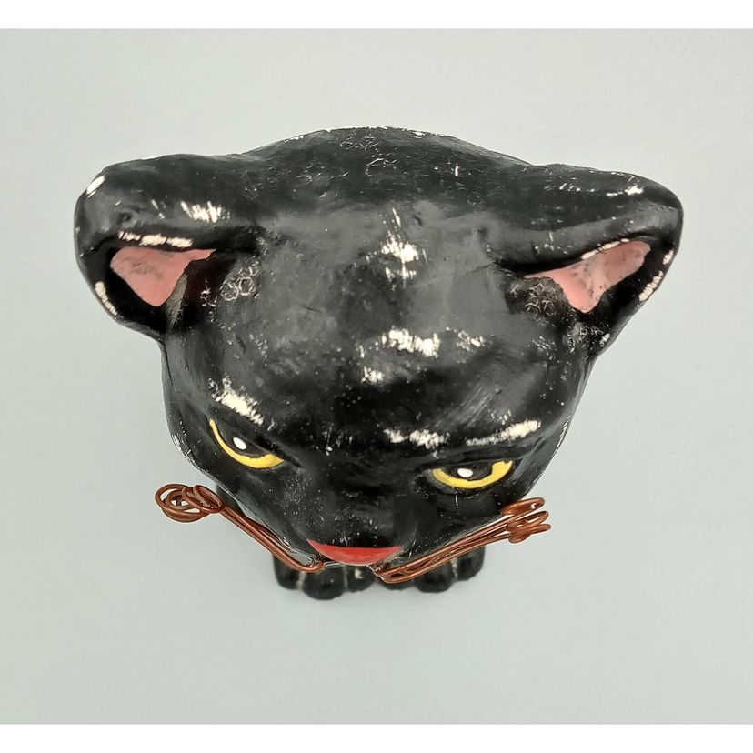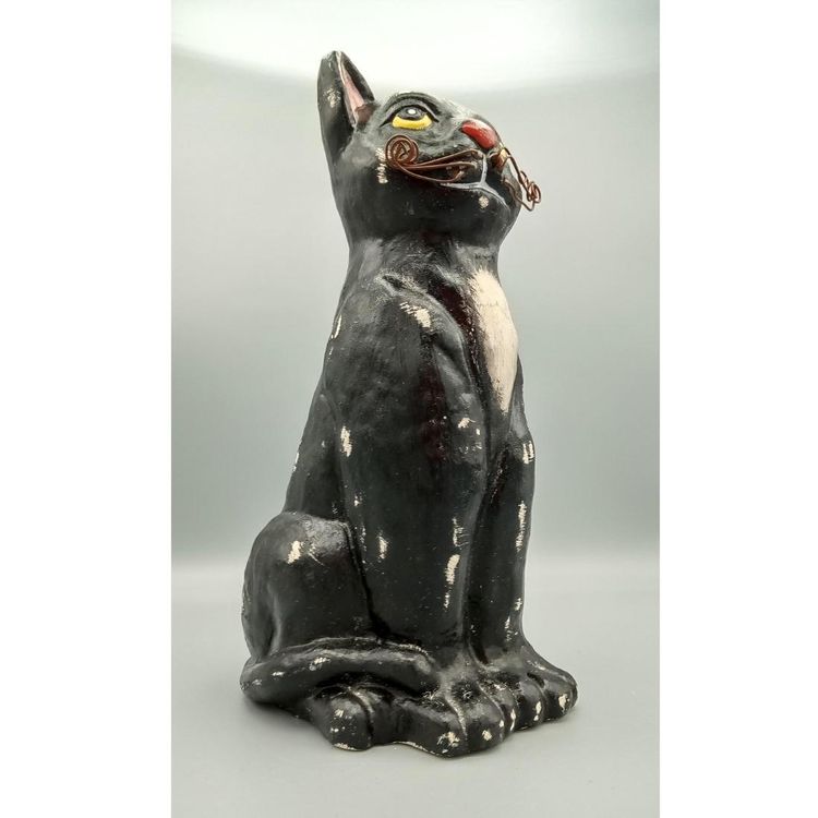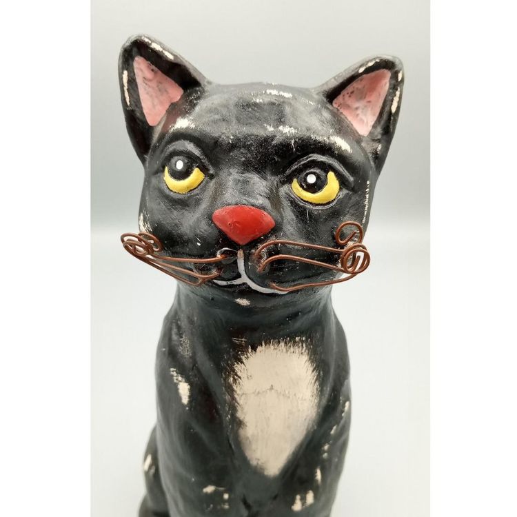 This guy demands your attention when you spot him. His face is full of personality which is why I picked him up. He's purposely distressed to look like he's carved from wood so there's no actual damage. His whiskers are a bit wonky but I believe that's the way they were manufactured. He looks like wood but is made of ceramic. He's 8.5" tall so ....figure or figurine? You decide. And thanks for looking!