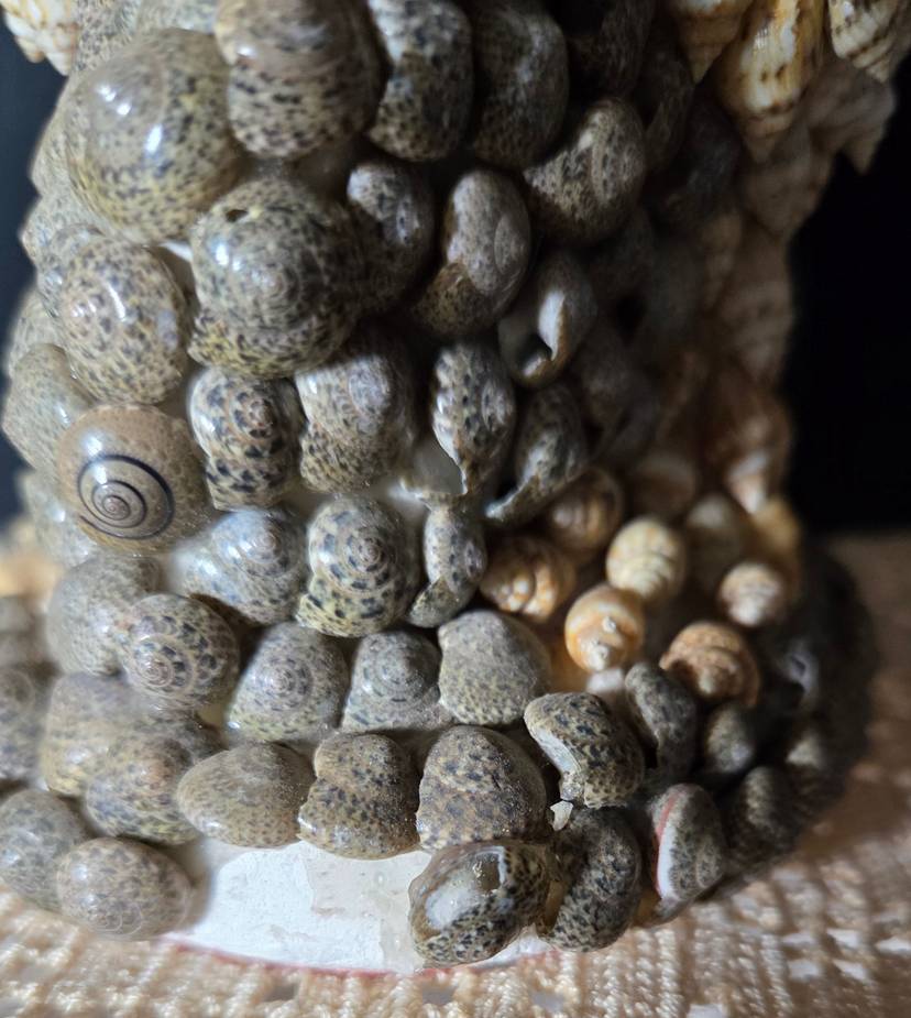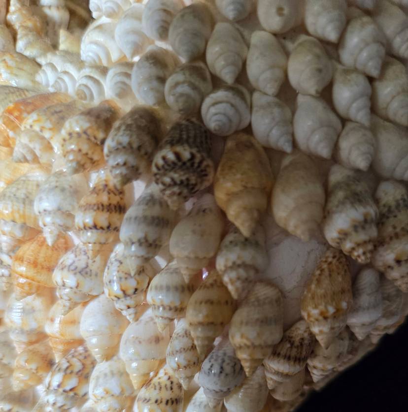 9 1/2" tall x 5 1/2" wide. Missing some shells as shown in pictures