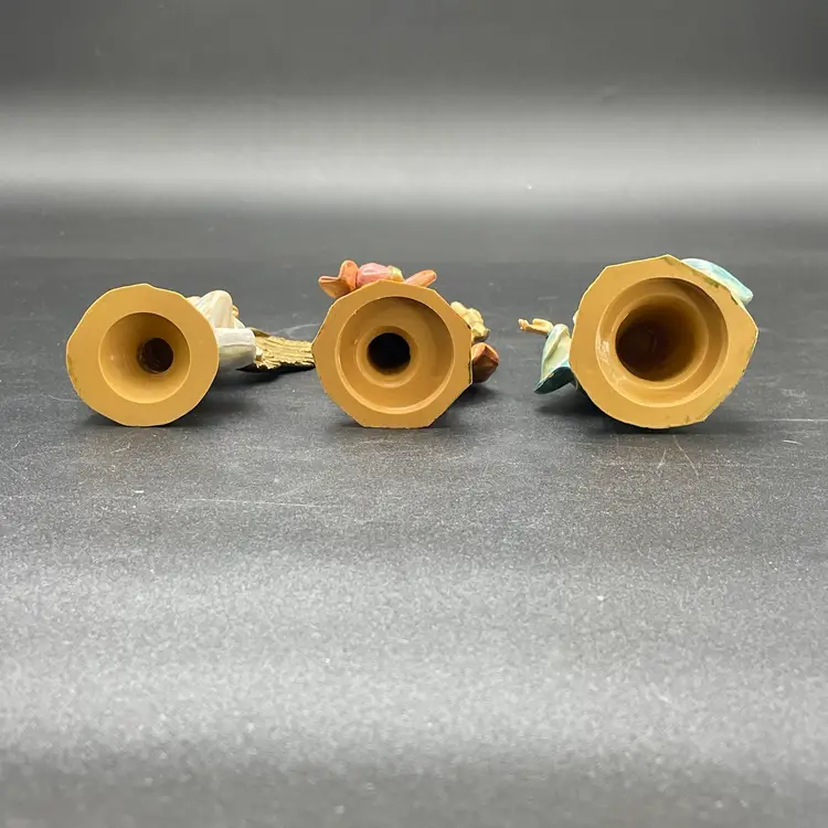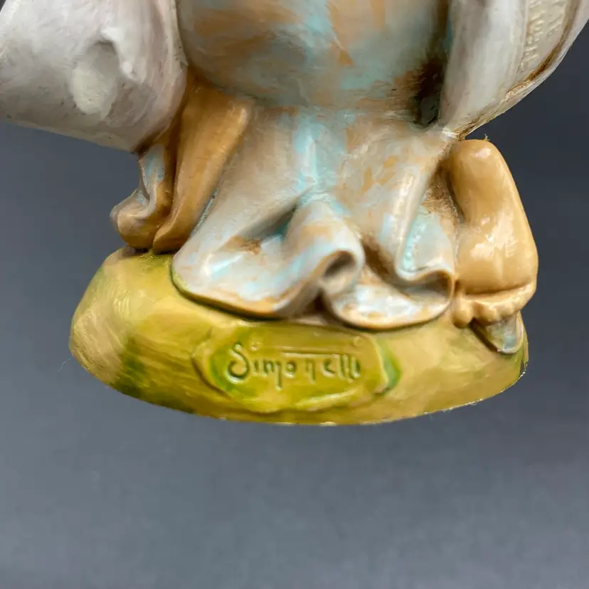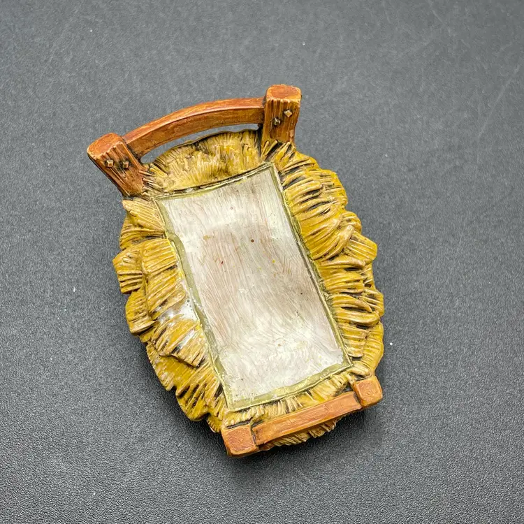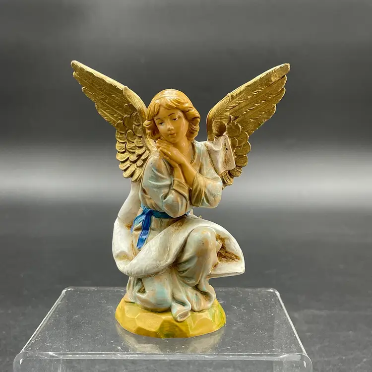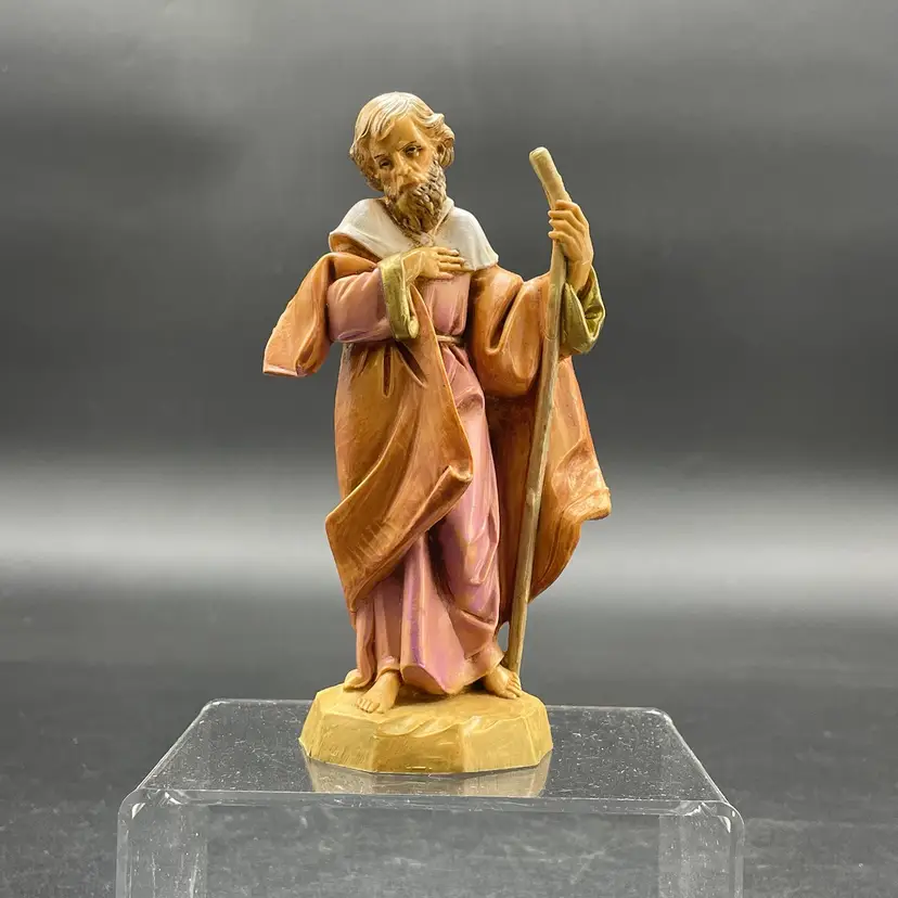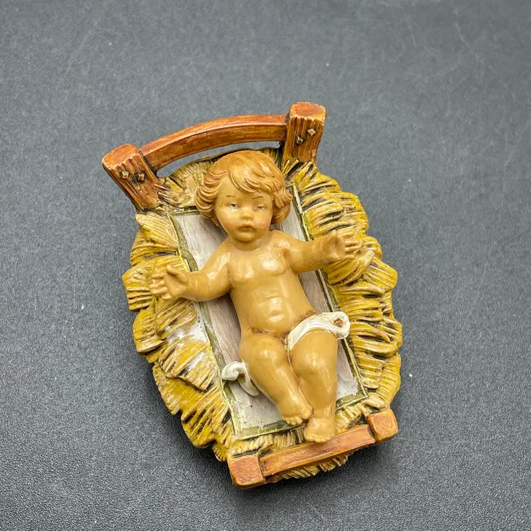 This is a set of 5 vintage 1991 Fontanini Depose Italy nativity set. It includes Mary, Joseph, baby Jesus and crib, and the holy angel. Each piece is marked. Joseph measures approximately 4.5" tall. Mary is approximately 4" tall. Baby Jesus is approximately 2.5" long. The angel is approximately 4" tall. No box. No major flaws.