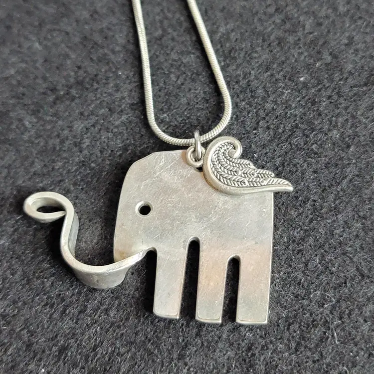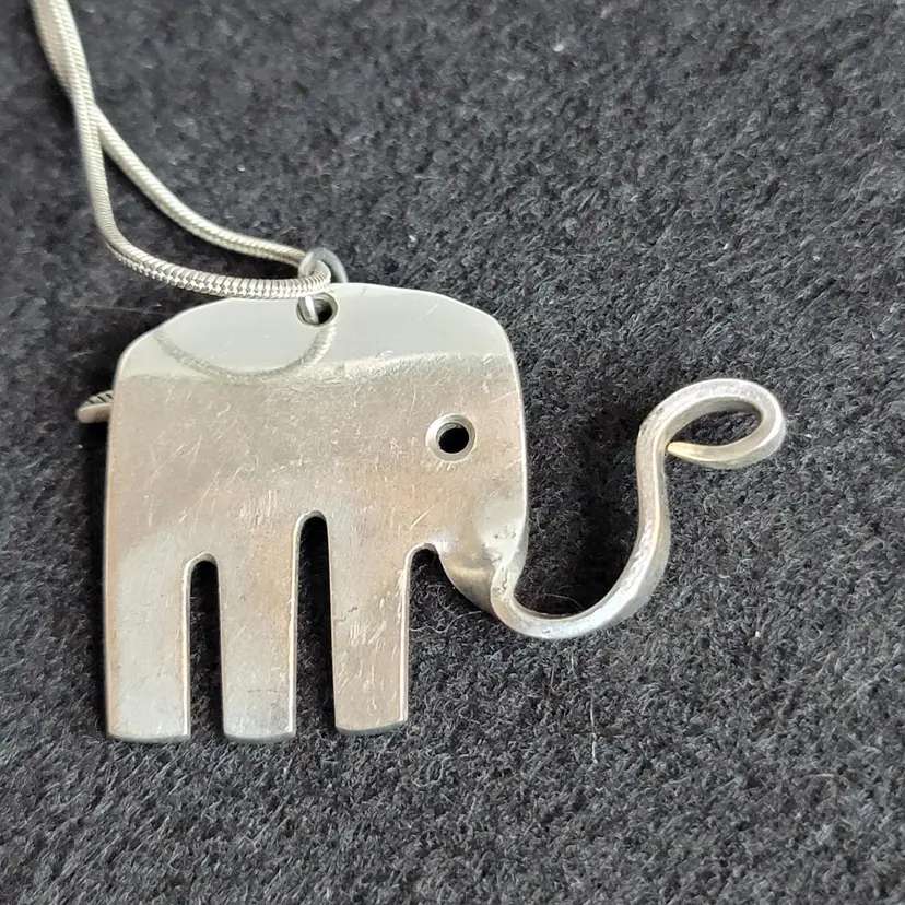 Adorable necklace made from a fork! π΄π Love it! ***note it comes on an untested 925 stamped chain that does have some bends to it. Could possibly be straightened out not sure. No markings on elephant ***