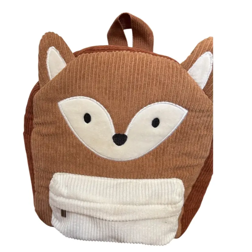 Chocolate brown fox mini backpack with off white accents. Approximately 10 x 8 Great for trips to the library!