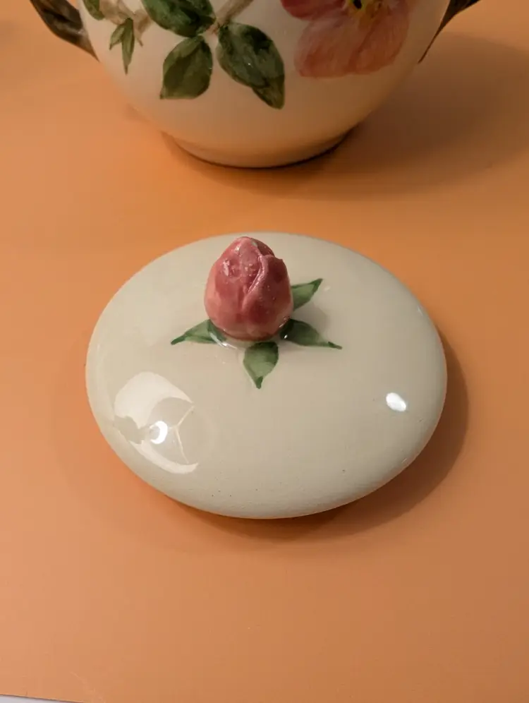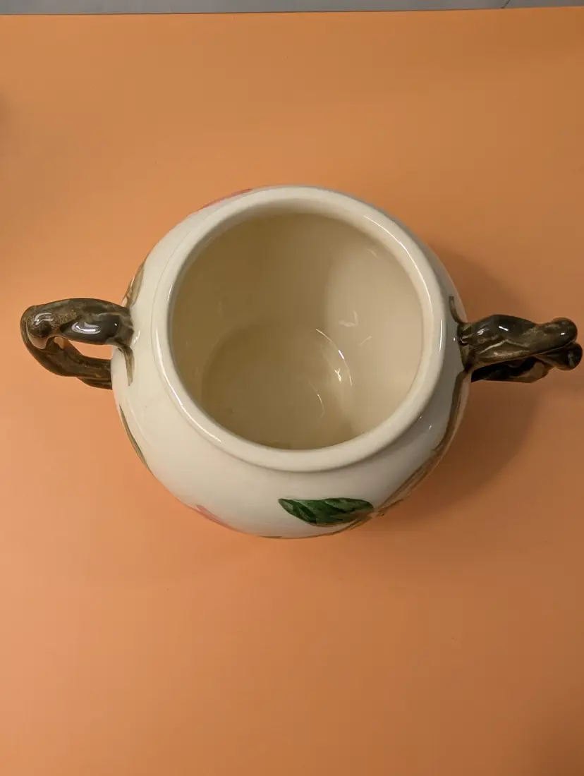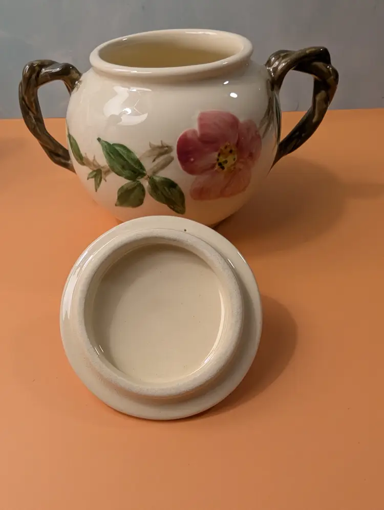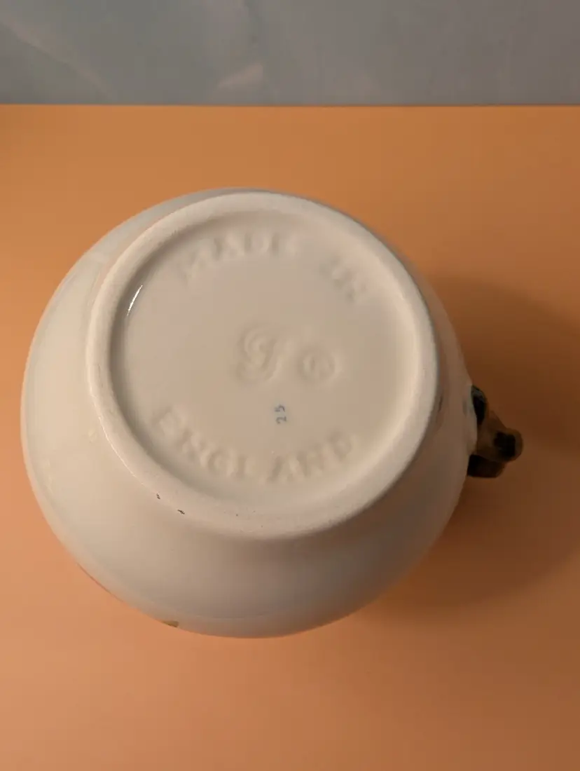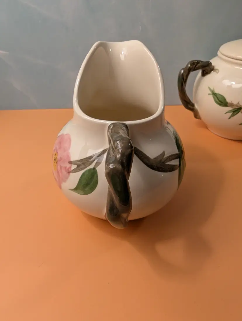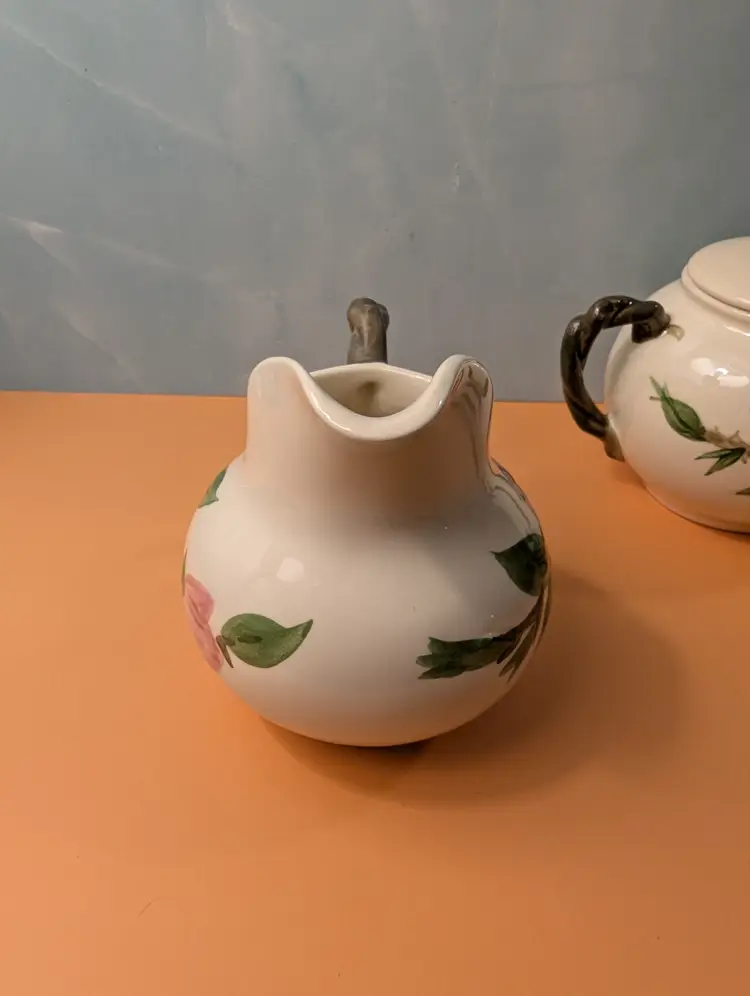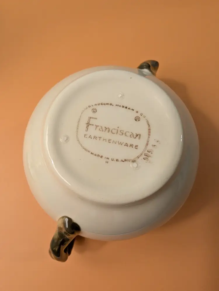 This beautiful set is in pristine condition with no chips or cracks. The sugar bowl is marked USA on the bottom. The cream pitcher is marked England on the bottom.