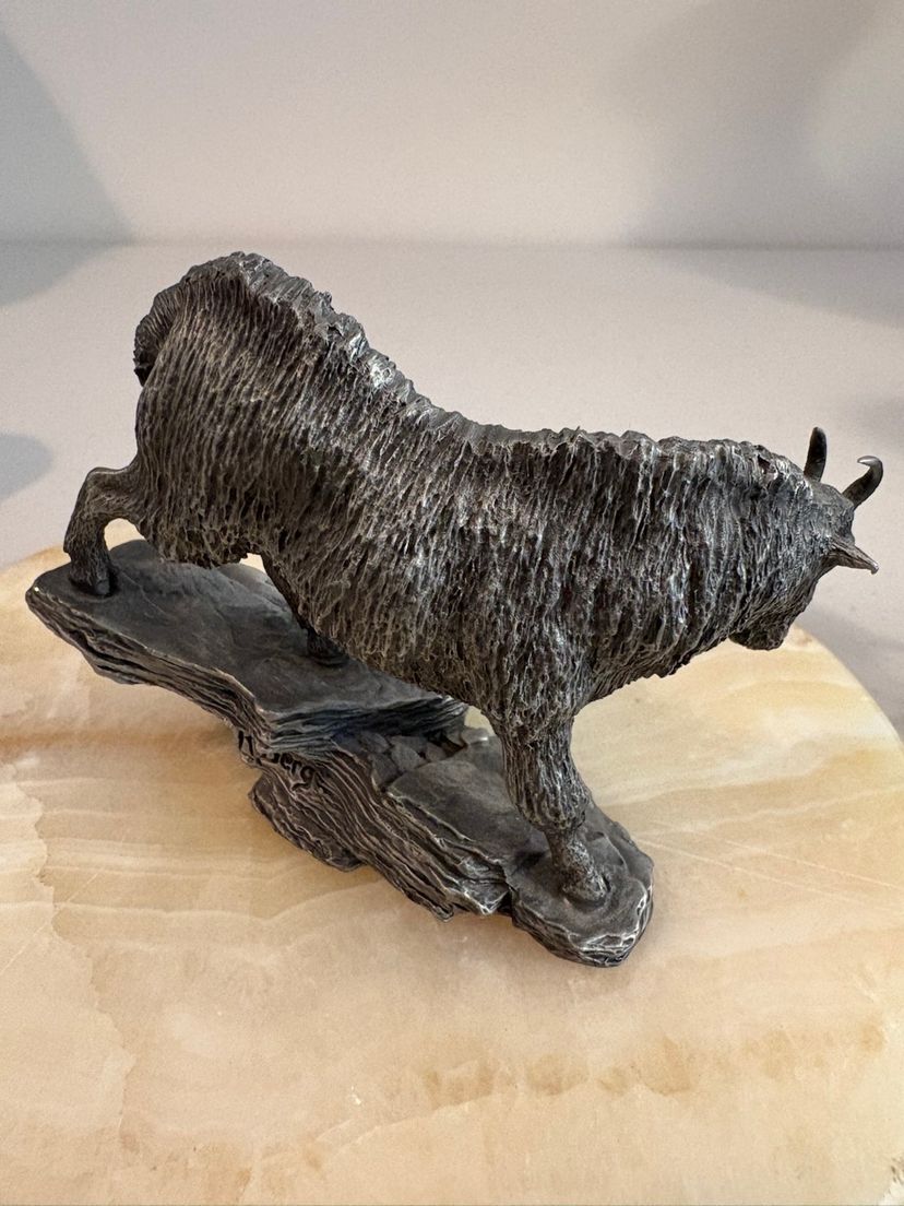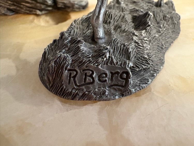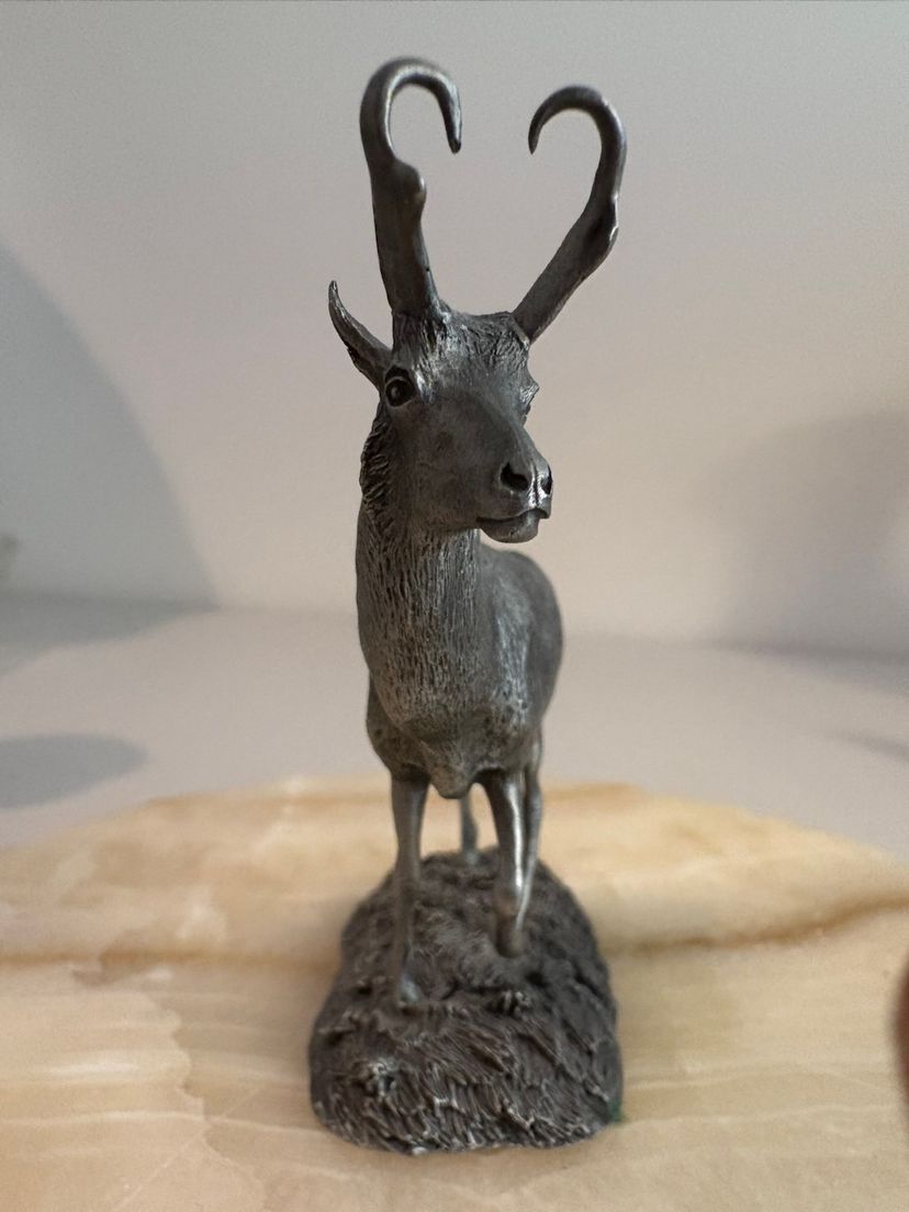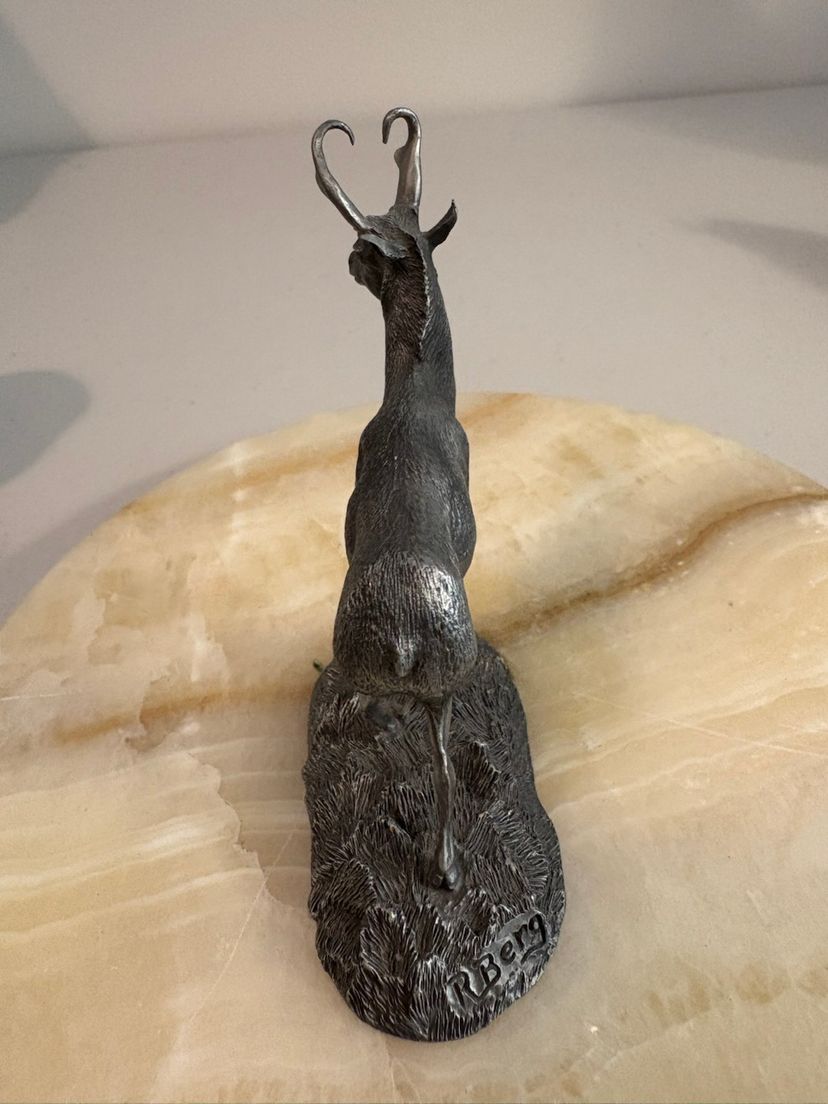 Vintage from 1976 the pewter Pronghorn Antelope and the Mountain Goat. Signed by R. Berg. Great decor for the man cave.