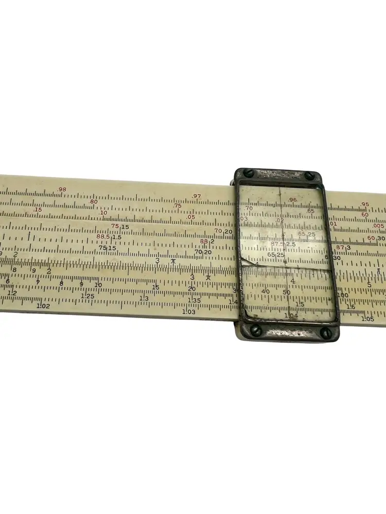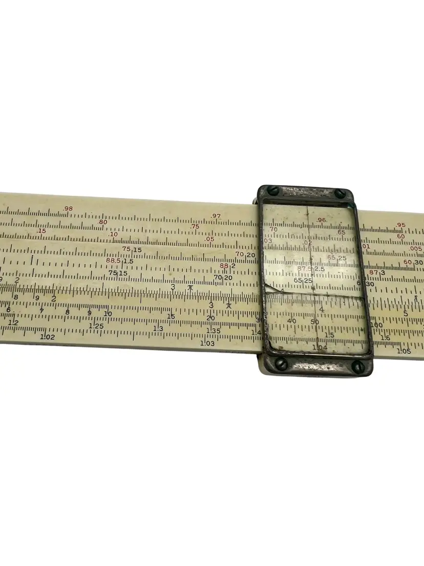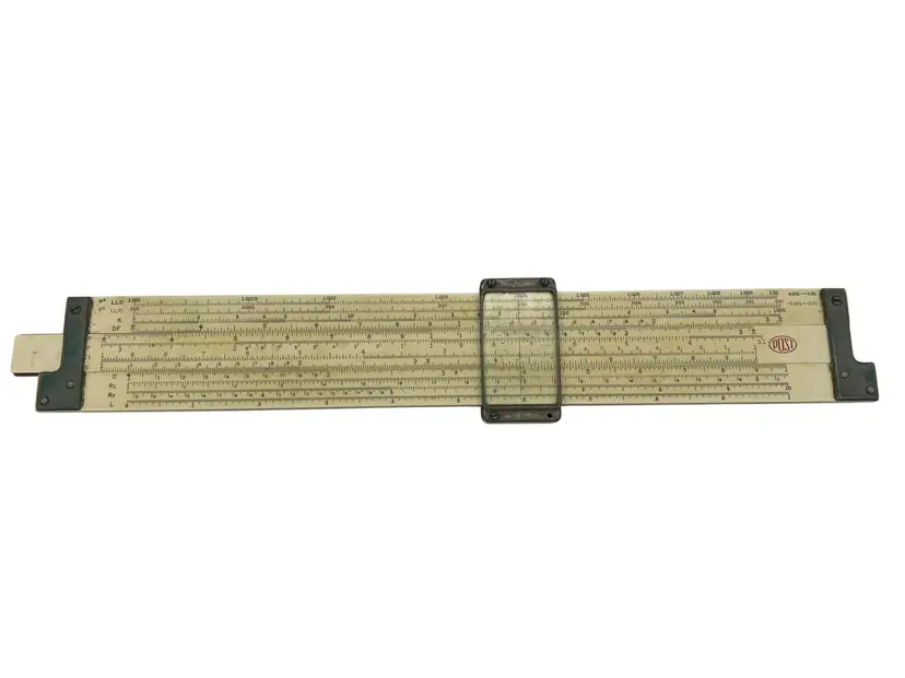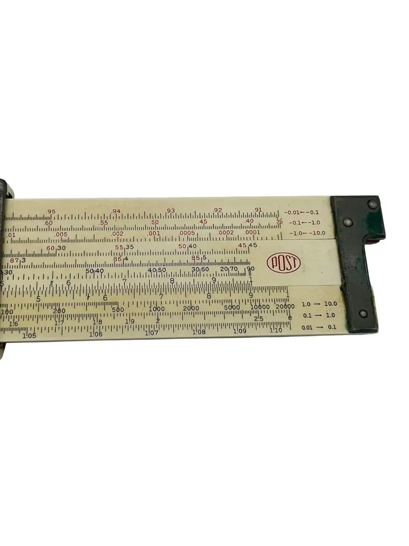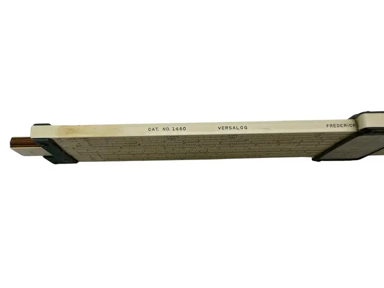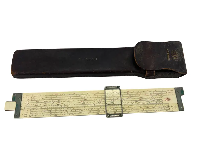 Original Frederick Post Versalog 1460 duplex slide rule, manufactured by Hemmi in Japan. Features log–log and trig/exponential scales typical of the Versalog line. Includes the original POST VERSALOG leather belt-loop case. Overall a solid, functional example for engineers, students, or slide-rule collectors.