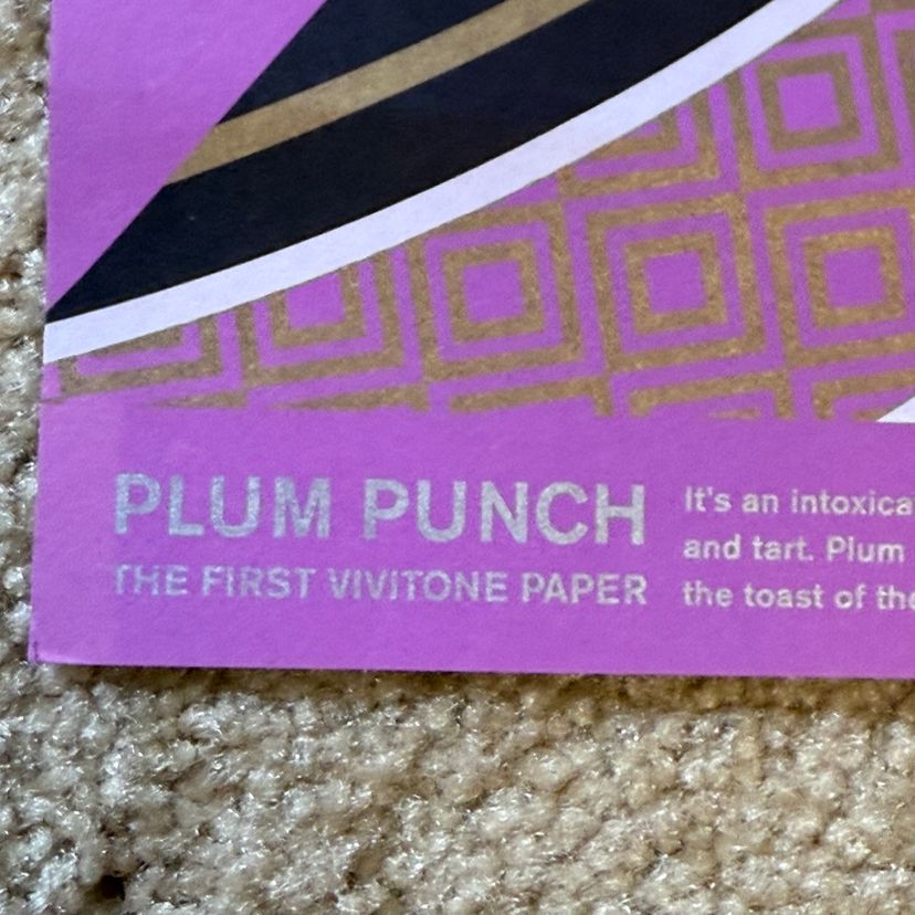 The "Plum Punch" poster for French Paper Company was designed by Charles S. Anderson Design Co. in 1999. The poster was created for a flash marketing event for the company's new VIVITONE paper concept.