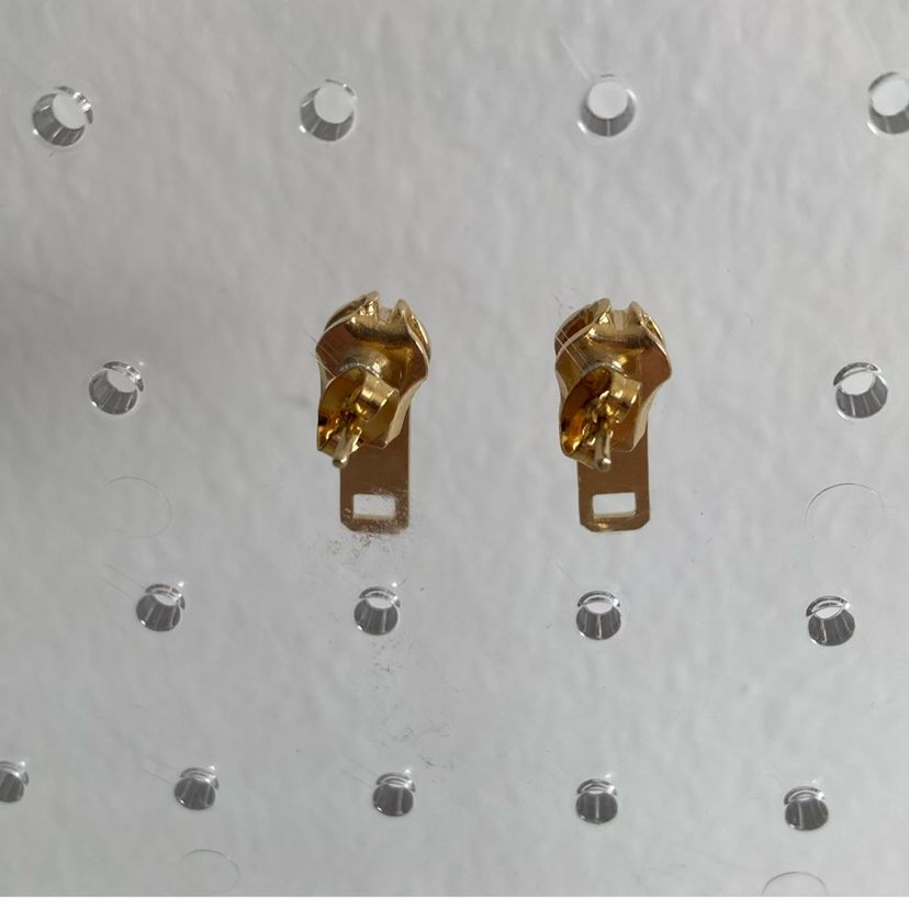 1990’s gold zipper pull earrings. Posts with butterfly backs. They measure about 1/3” x 3/4”.