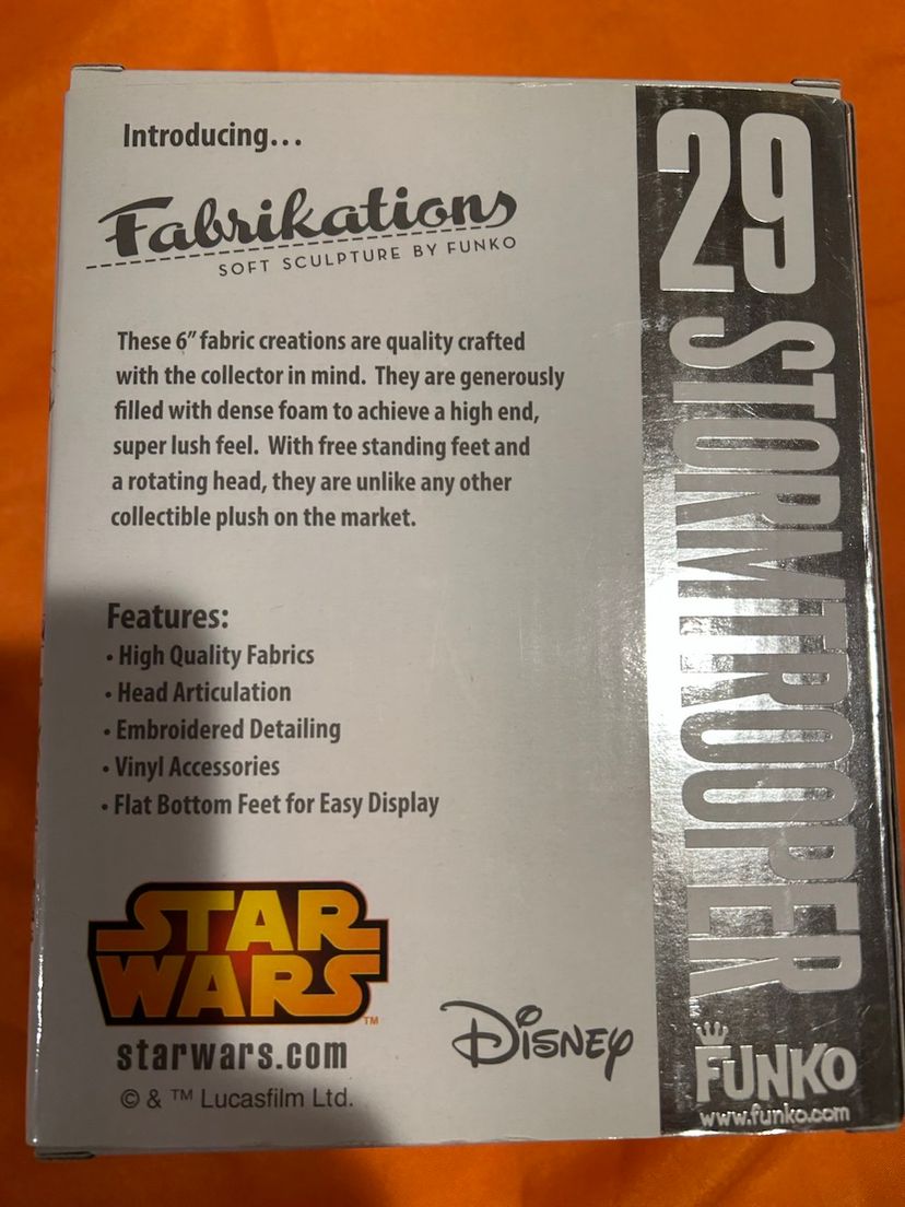 The FUNKO Star Wars Stormtrooper 6" Soft Sculpture Toy is a high-quality collectible figure featuring embroidered detailing and a rotating head. Made with vinyl materials, this white Stormtrooper figure is part of the Star Wars franchise and is part of the Fabrikation product line. Standing at 6 inches tall with flat bottom feet for easy display, this modern collectible from 2015 is perfect for fans of the Stormtrooper character and Star Wars series.