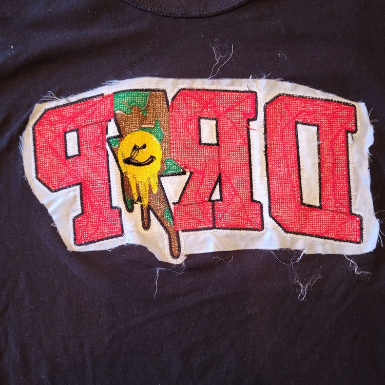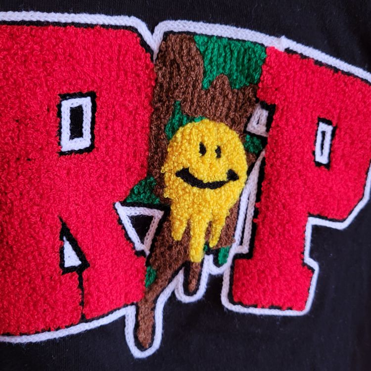 Size: Large Mens Material: 100% Cotton Color: Black Pit to Pit: 22 inches Length: 29 inches Custom Embroidered and Chenille Stitch Work